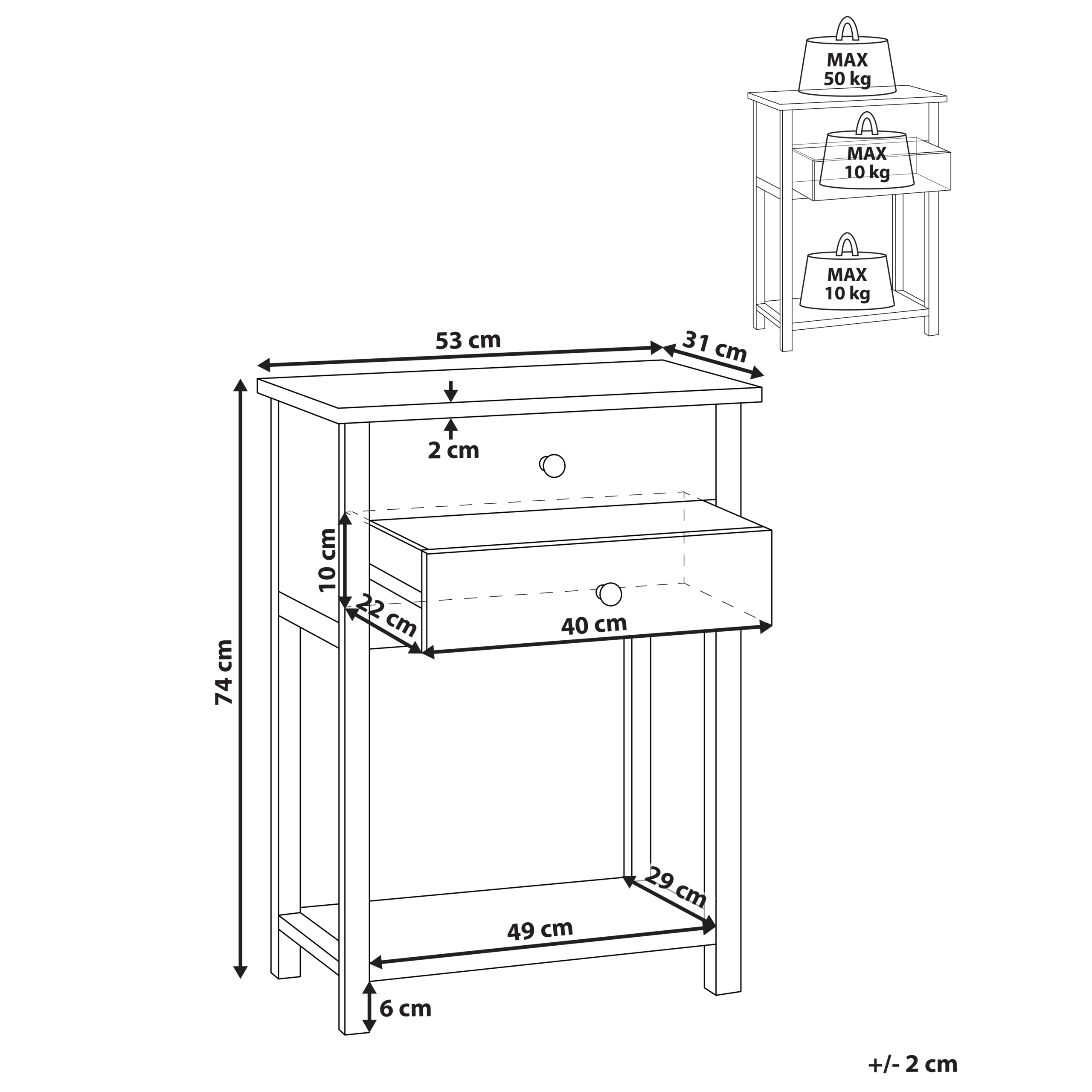 Laatikon kantokyky: 10 kg