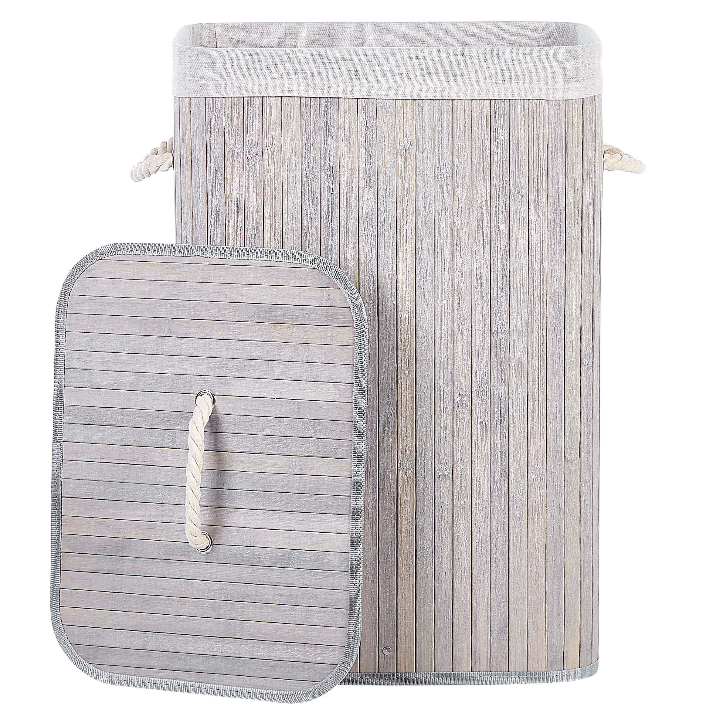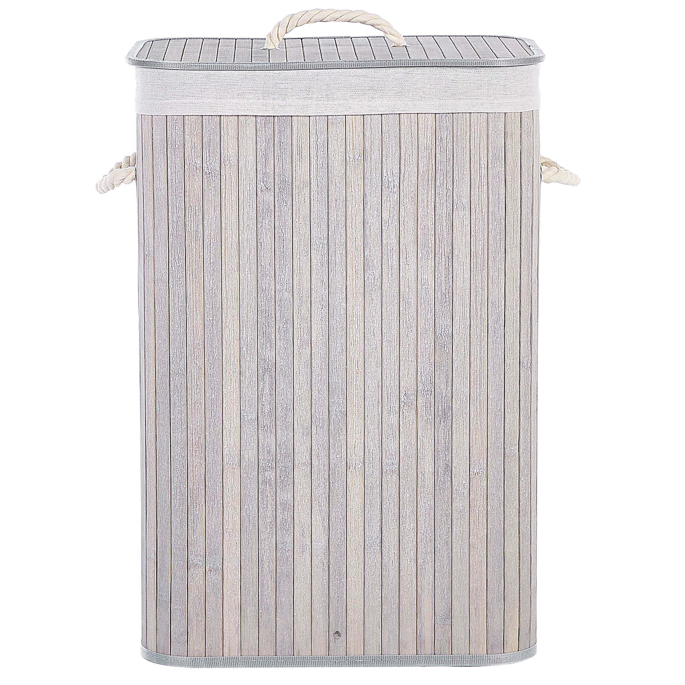 Kannellinen säilytyskori kylpy- tai olohuoneeseen. Tämä kompakti ja käytännöllinen kori auttaa pitämään kylpyhuoneen, makuuhuoneen tai olohuoneen järjestyksessä. Yksinkertaisesti mutta esteettisesti muotoiltu kori on valmistettu vankasta bambusta. Sisäpuoli on verhoiltu irrotettavalla ja pestävällä kankaalla, joka takaa hygieenisen käytön. Korin kannessa ja sivuilla olevat kahvat tekevät sen siirtelystä helppoa. Se tarjoaa sopivasti tilaa niin likavaatteille kuin tarpeellisille esineillekin.