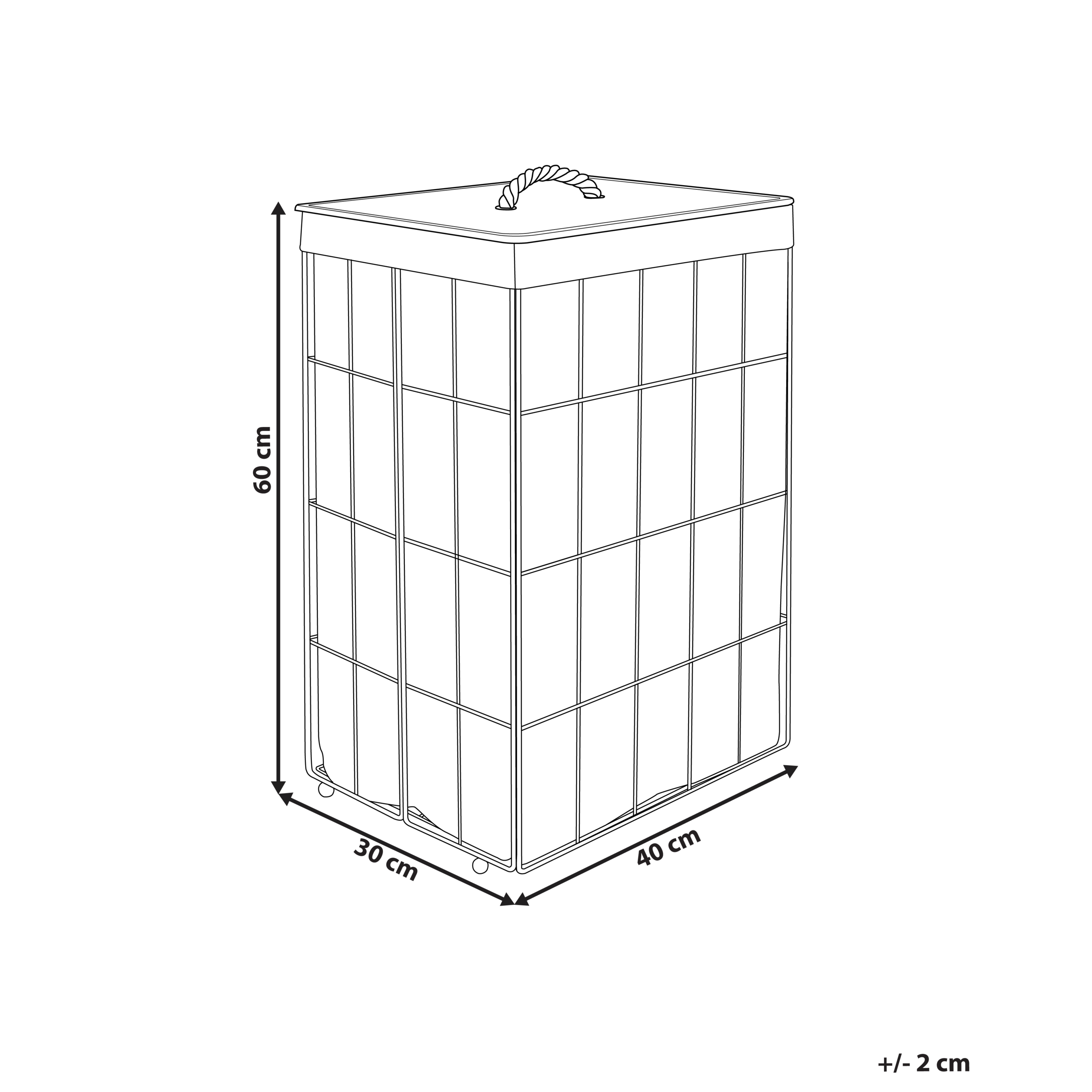 Pyykkikori kannella ja kahvalla. Tässä tyylikkäässä pyykkikorissa yhdistyvät käytännöllisyys sekä minimalistinen muotoilu. Vankasta mustasta metallista valmistettu kori, jossa on valkoinen sisävuorikankangas, on täydellinen pitämään vaatteet tuuletettuina. Vaaleasta bambupuusta valmistettu, irrotettava kansi tuo luonnollisen kosketuksen, tehden korista samalla helposti puhdistettavan. Tämä kori sopii erinomaisesti moderniin kylpyhuoneeseen tai pyykkitupaan.