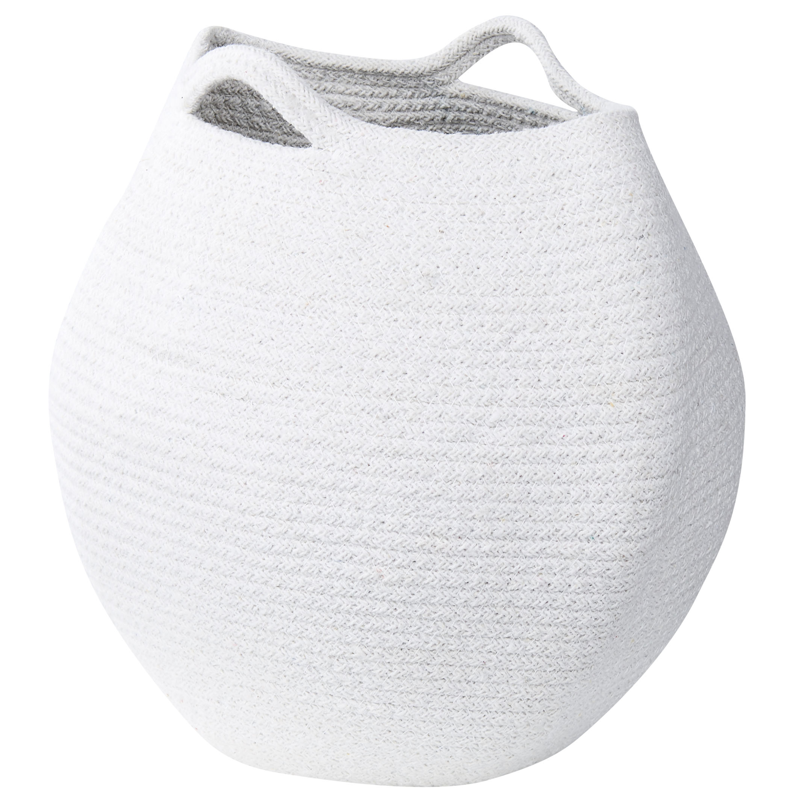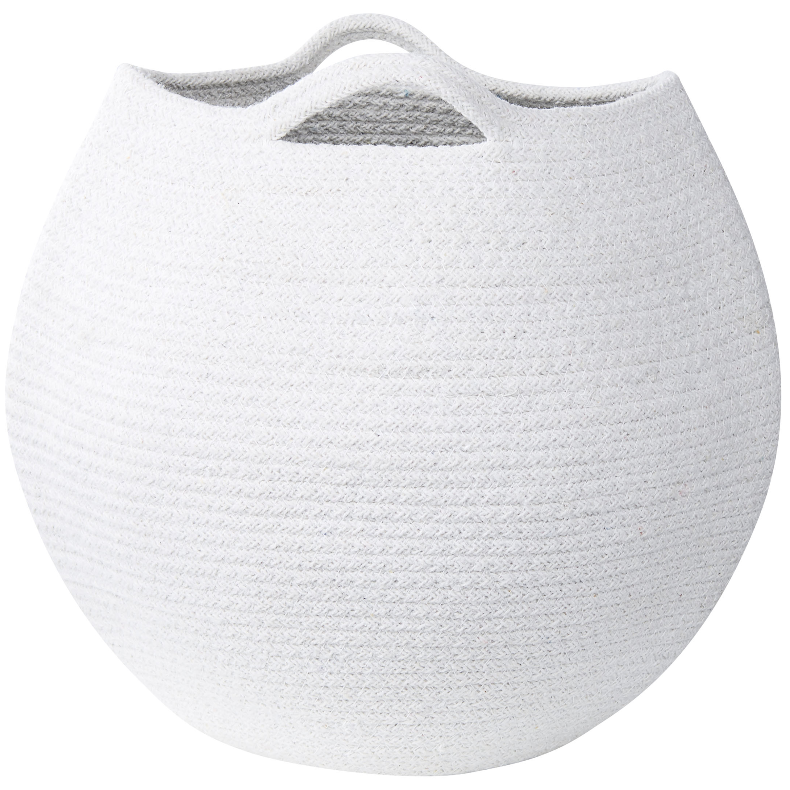 Tyylikkäät pyöreät korit kahvoilla. Tämä kahden korin setti auttaa pitämään tilan järjestyksessä. Korit ovat valmistettu käsin laadukkaasta puuvillasta, joka takaa tyylikkään, luonnollisen ilmeen. Trendikäs luonnonvalkoinen väri saa korit näyttämään hyvältä monissa erilaisissa sisustuksissa. Käytännöllisten kahvojen ansiosta koreja on helppo siirtää paikasta toiseen. Aseta ne makuuhuoneeseen tai olohuoneeseen, jossa ne toimivat koristetyynyjen, vaatteiden tai erilaisten huopien säilytyspaikkana.