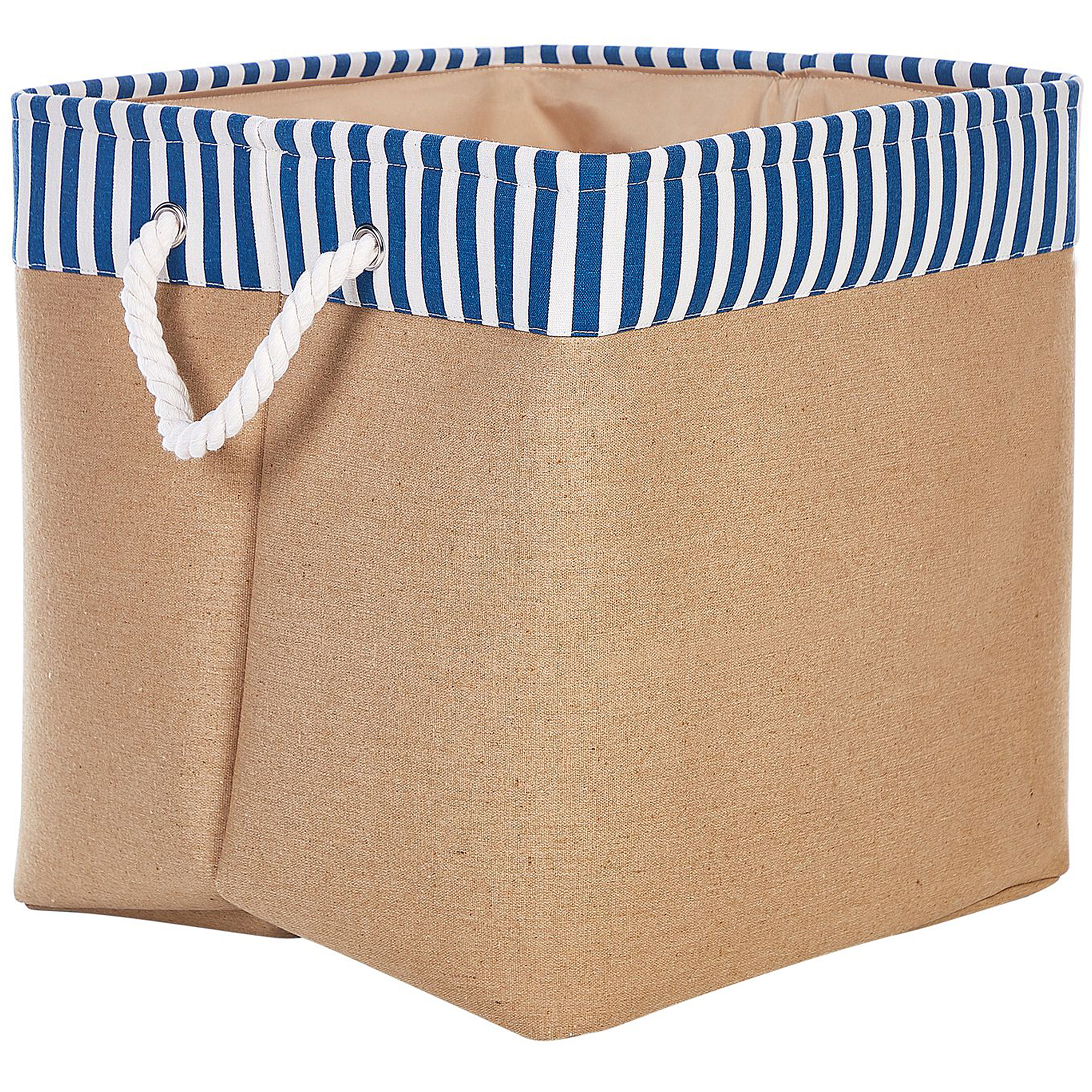 Tyylikkäät korit raidallisilla reunoilla. Nämä erittäin tilavat korit ovat täydellisiä olohuoneeseen, lastenhuoneeseen tai kylpyhuoneeseen pitämään tila siistinä ja järjestyksessä tyylillä. Korit on valmistettu kestävästä materiaalista. Koristeellinen, raidallinen korin sisäverhoilu ja punotut köysityyliset kahvat täydentävät korin modernin, saaristomaisen ilmeen.