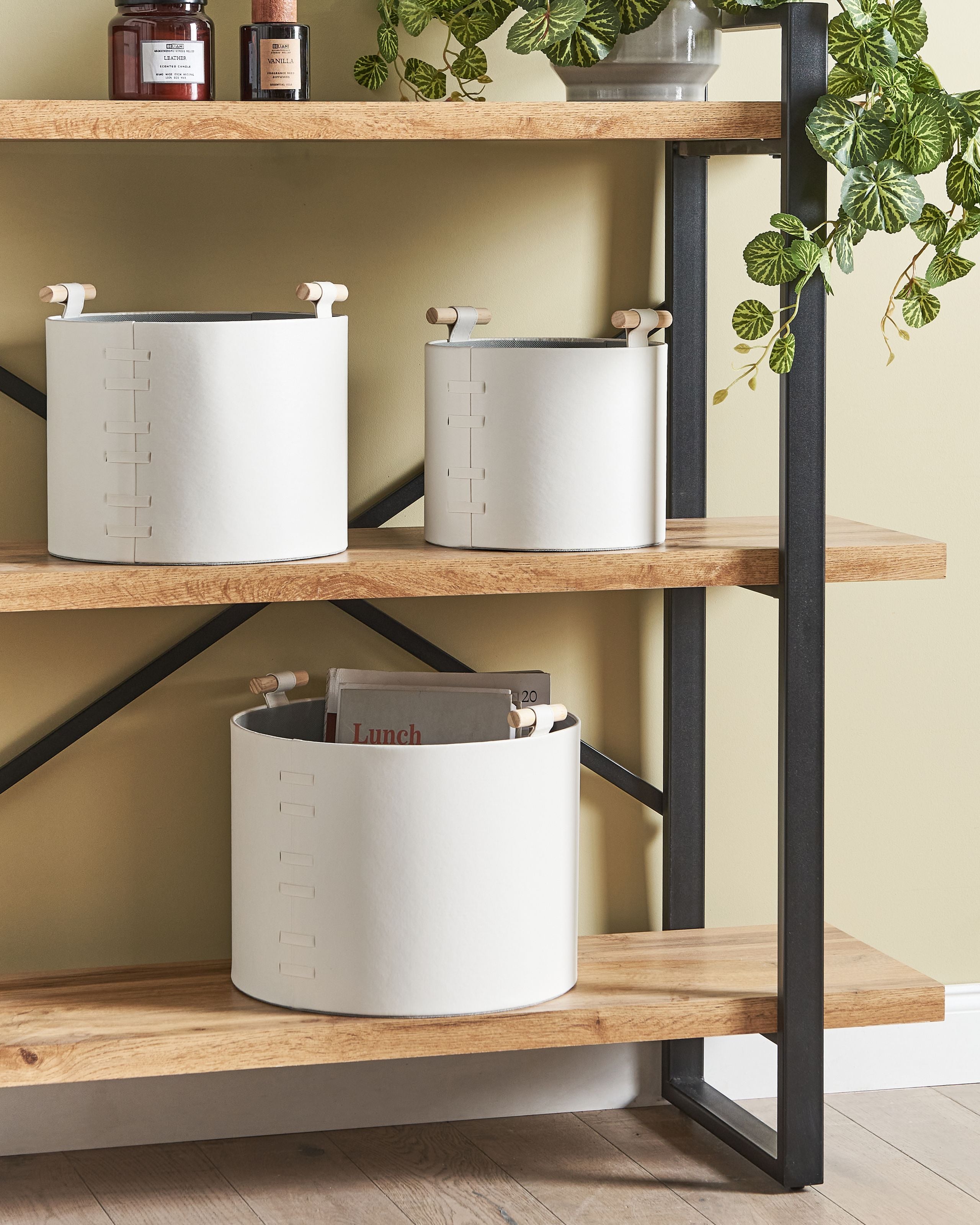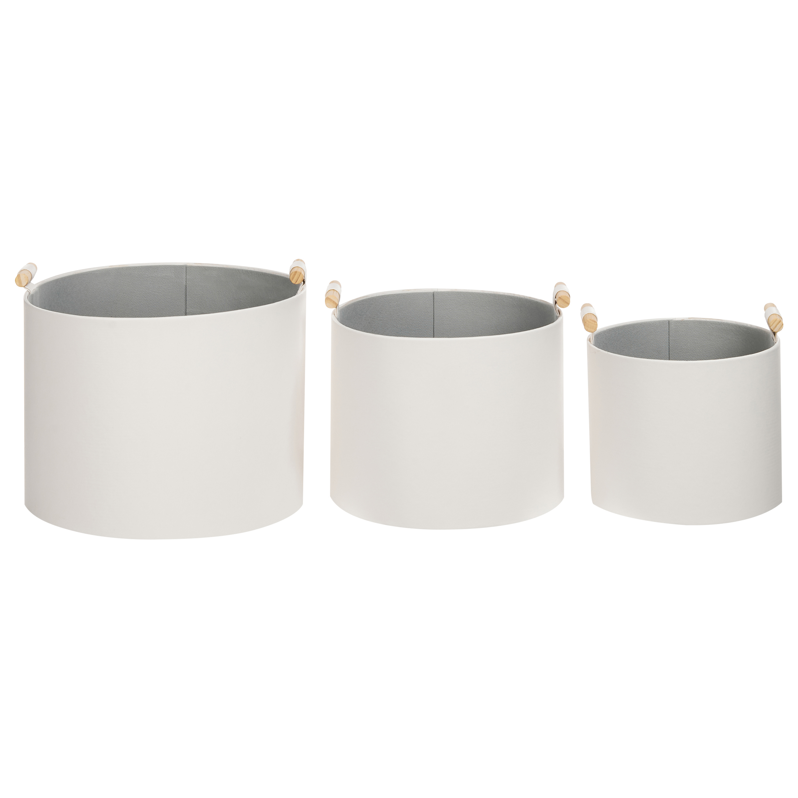 Käsintehty pinottava korisetti kahvoilla. Lisää kotiin tyyliä ja järjestystä tällä kolmen erikokoisen korin setillä, jotka on valmistettu kestävästä keinonahasta. Kätevien kahvojen ansiosta koreja on helppo siirtää paikasta toiseen, ja ne tarjoavat modernin säilytysratkaisun päivittäistavaroille. Monipuoliset pyöreät korit sopivat saumattomasti olohuoneeseen, eteiseen ja kotitoimistoon, pitäen tilan siistinä ja järjestyksessä.