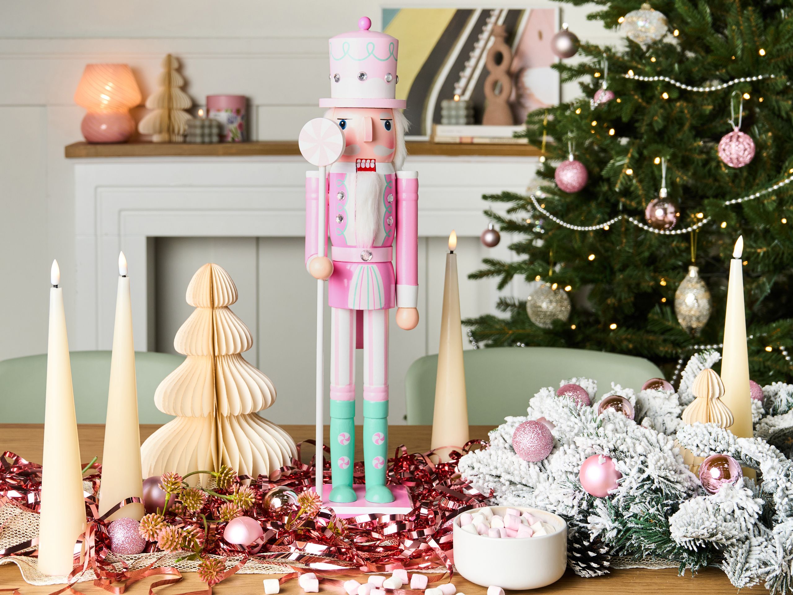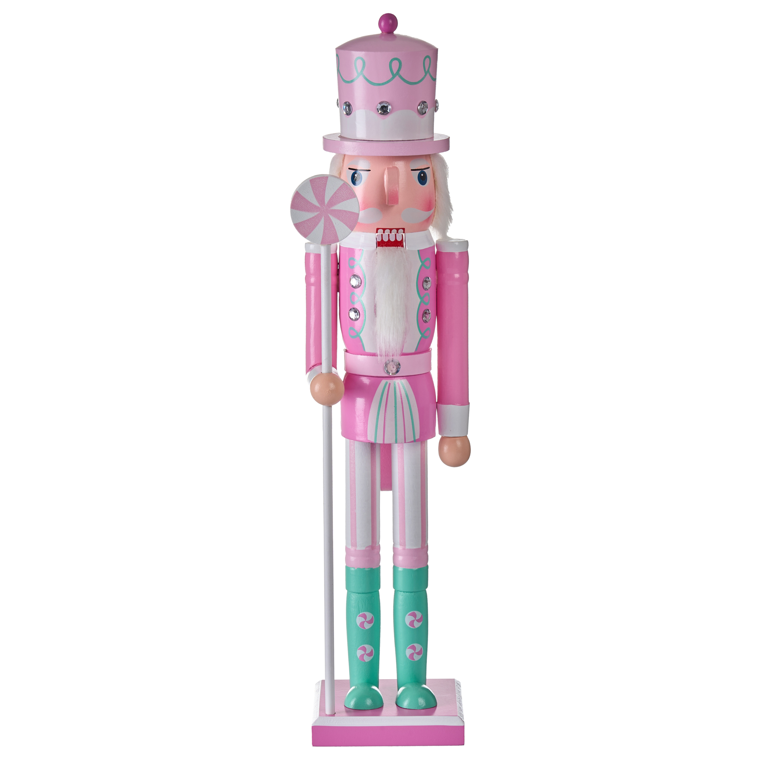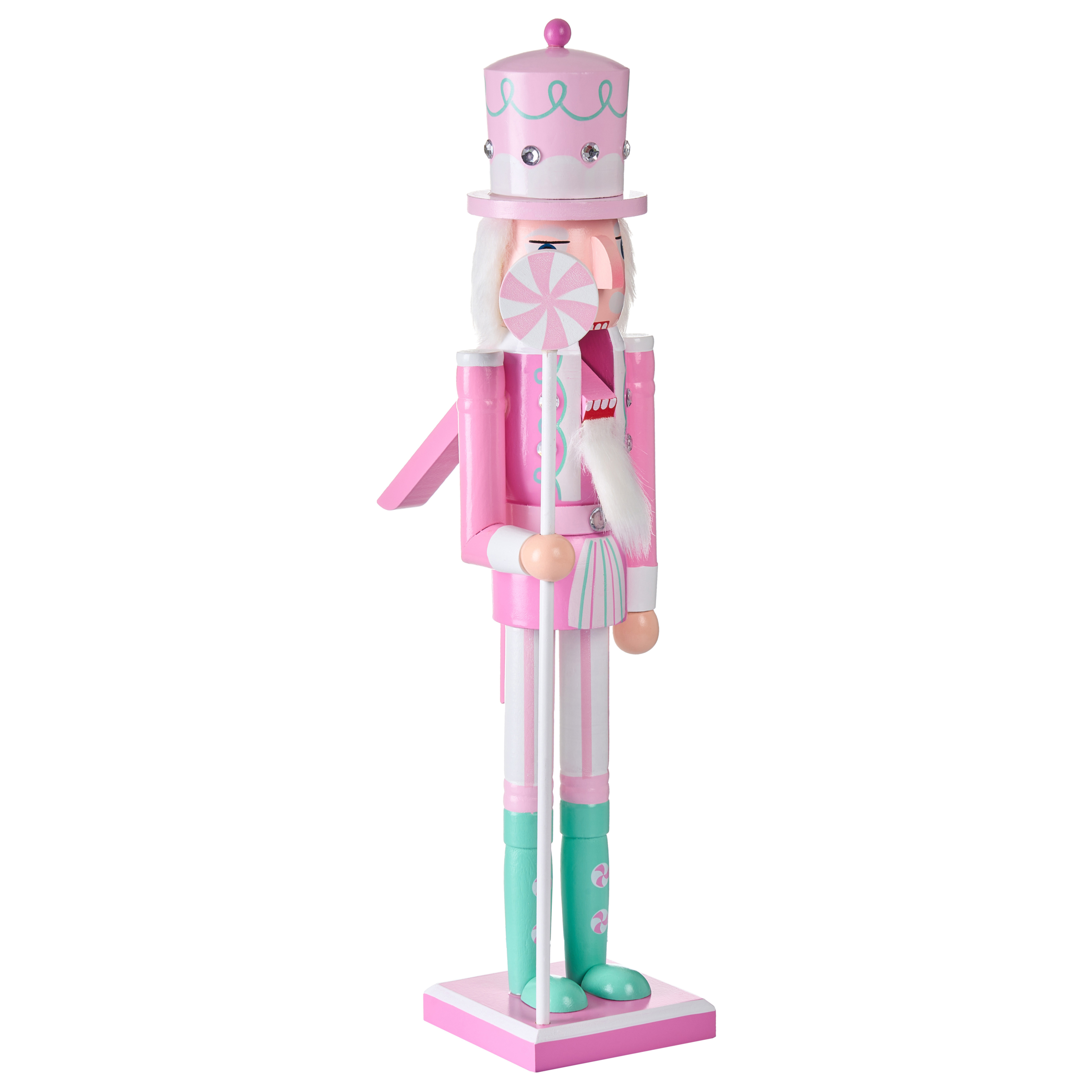 Pähkinänsärkijä makeisteemalla. Lisää jouluiseen sisustukseen klassinen, käsintehty lisä tällä pähkinänsärkijällä. Sievä värimaailma, perinteinen ilme ja makeisteema tekevät siitä erinomaisen valinnan jokaiseen joulukoristeluun. Aseta koriste takanreunalle, senkille tai pöydälle levittämään kauden iloa ja luomaan kodikkaan juhlatunnelman.