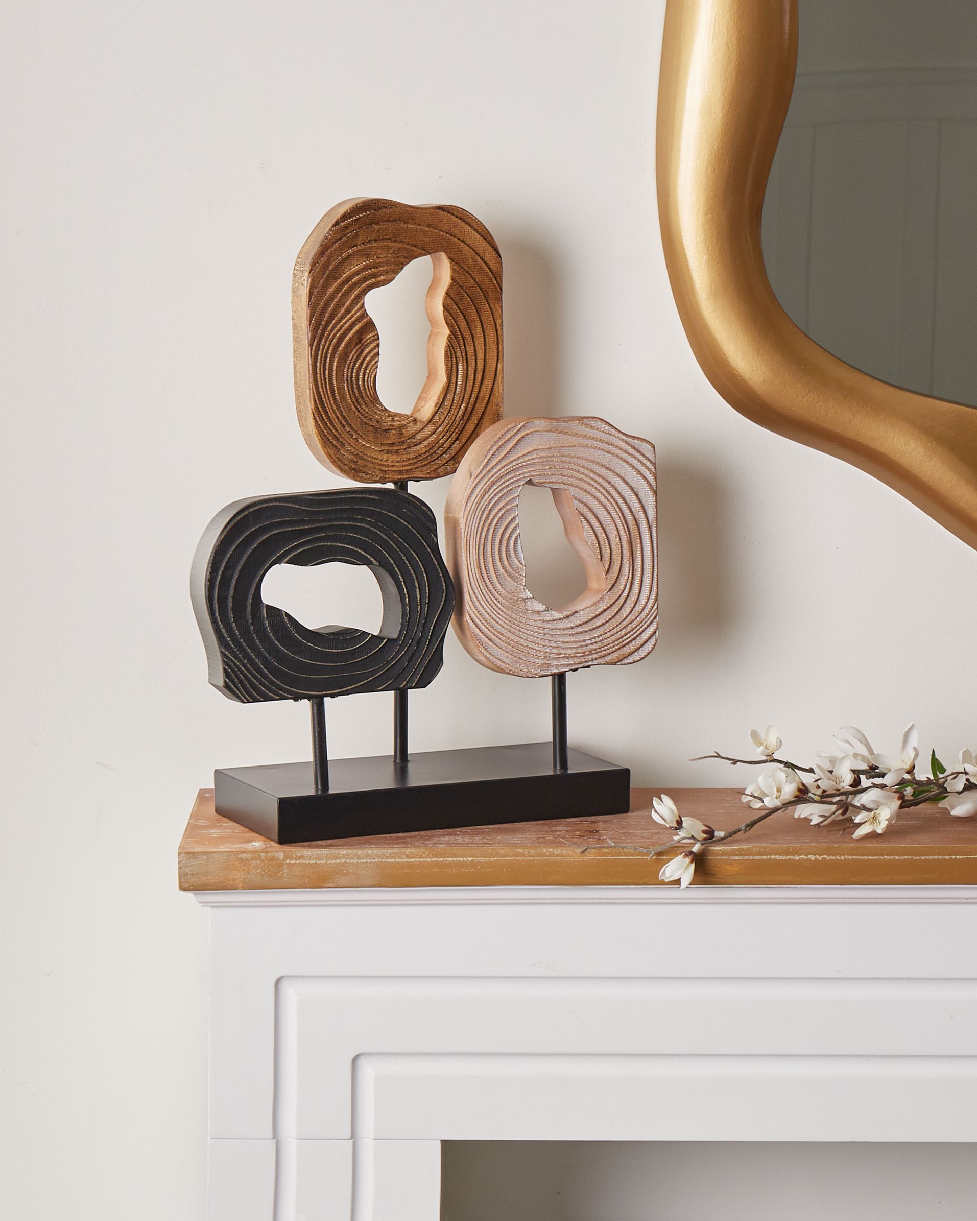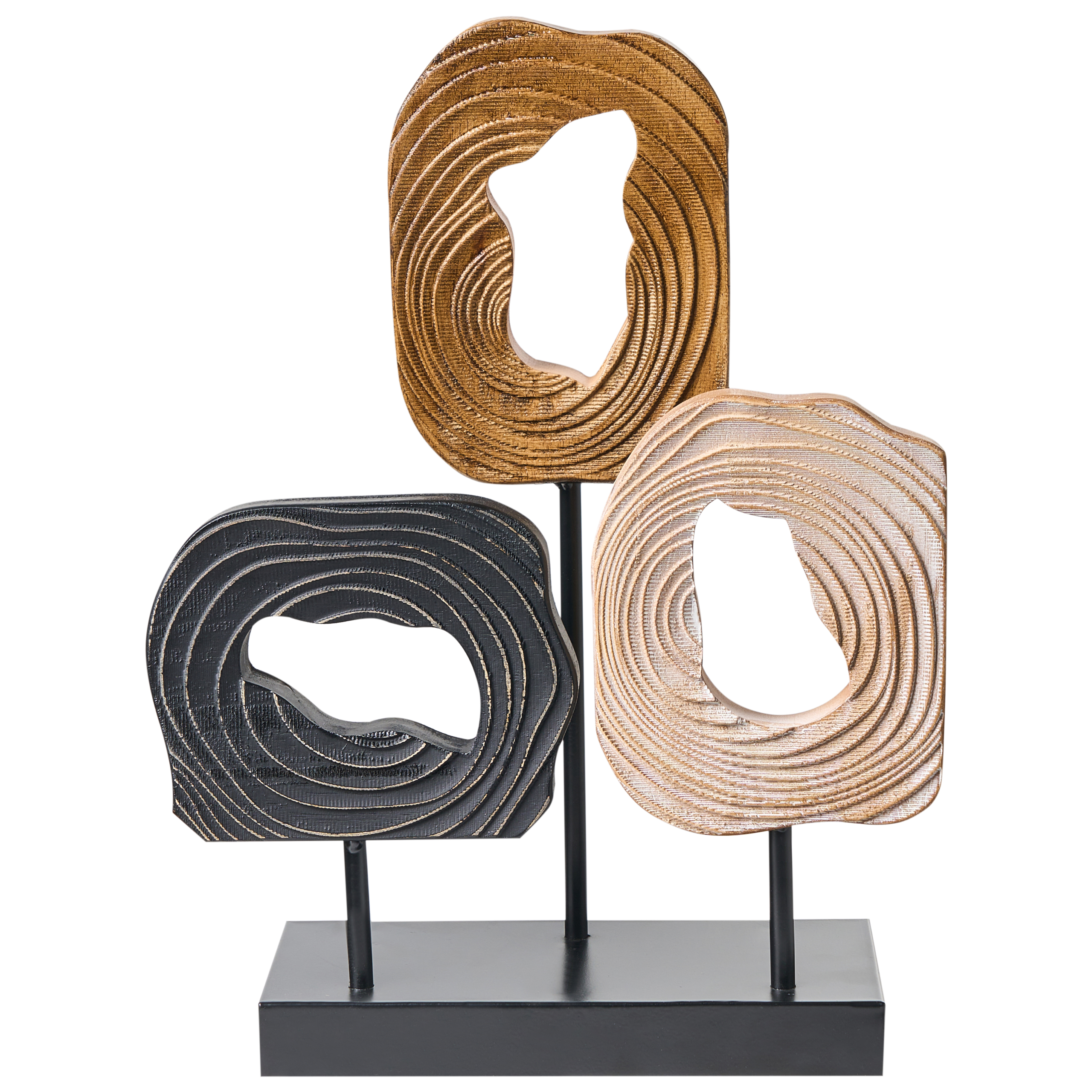 Tyylikäs käsintehty seisova koriste. Tämä vaikuttava koriste-esine tuo tilaan sekä eleganssia että charmia. Se on yksityiskohtaisesti käsityönä valmistettu ja täydentää vaivattomasti mitä tahansa sisustustyyliä. Koriste on valmistettu kuusipuusta kolmessa värissä, ja se seisoo tukevalla mustalla rautajalustalla, mikä tekee siitä silmiinpistävän keskipisteen huoneeseen kuin huoneeseen.