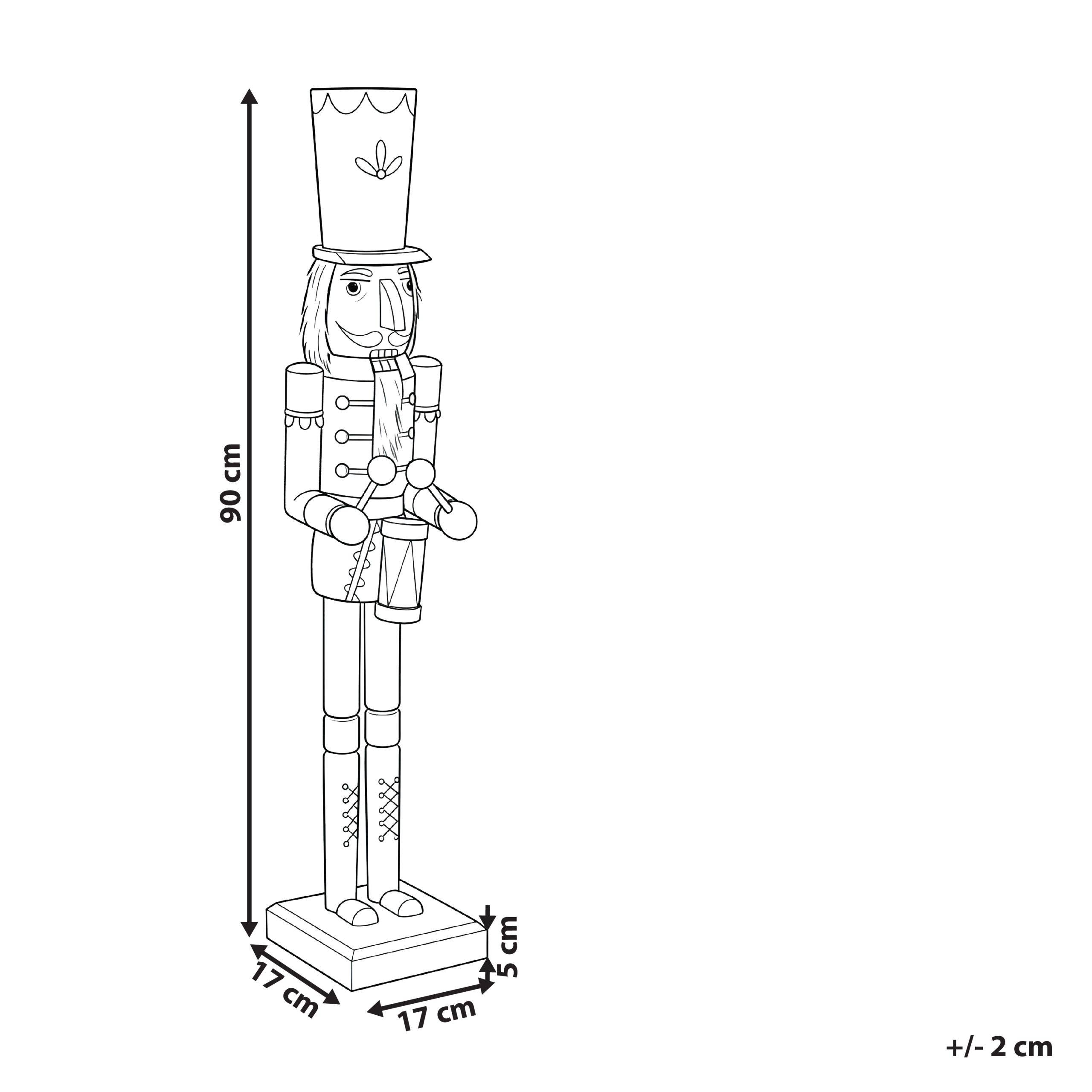 Klassinen korkea rumpali-pähkinänsärkijä. Lisää kotiin ripaus jouluista eleganssia tällä käsintehdyllä pähkinänsärkijällä, joka hehkuu sesongin iloa. Huolella toteutetut yksityiskohdat ja eloisat värit tekevät siitä näyttävän korosteen, joka sopii täydellisesti joulukuusen tai takan viereen. Se on ajaton koriste, joka täydentää sekä perinteistä että modernia joulukoristelua.