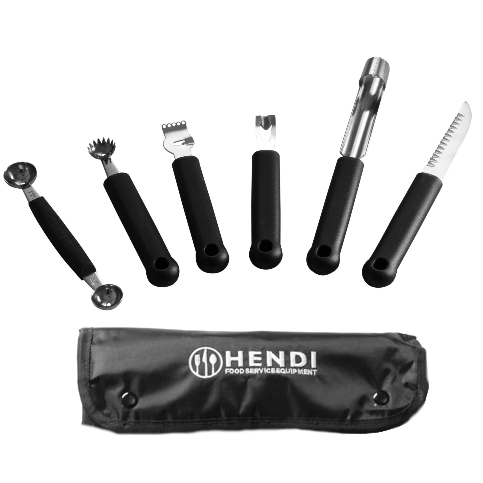 Ammattimainen koristeveitsisetti, välttämätön Hendin veistämiseen. Kaikki setin terät on valmistettu korkealaatuisesta, korroosionkestävästä ruostumattomasta teräksestä, ja kahva on polypropeenia. Veitset kestävät korkeita lämpötiloja, joten ne voidaan pestä astianpesukoneessa. Niitä voidaan käyttää turvallisesti ammattikeittiöissä, pienissä ravintoloissa ja kotitalouksissa sekä amatöörien keskuudessa, jotka uppoutuvat veistämisen taiteeseen.