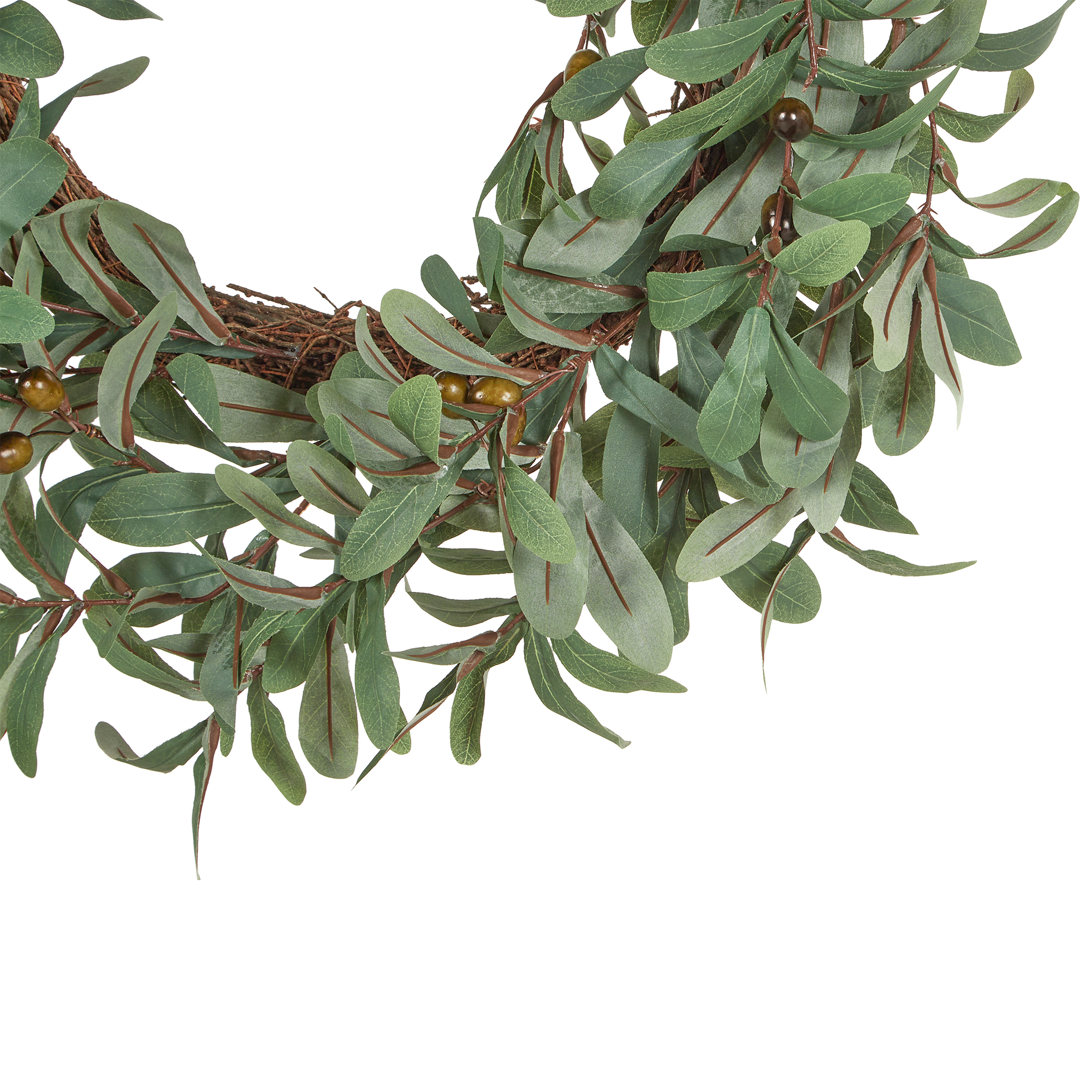Boheemi kranssi teko-oliiveilla. Lisää luonnollinen kosketus mille tahansa seinälle, pöydälle tai oveen tällä tyylikkäällä koristekranssilla. Pehmeät vihreät lehdet on valmistettu kankaasta, ja niiden sekaan piilotetut koristeoliivit antavat kranssille rauhoittavan ja kodikkaan ilmeen, minkä ansiosta se sopii erinomaisesti ympärivuotiseen käyttöön. Se on ihastuttava lisä mihin tahansa kotiin ja sopii käytettäväksi niin arkena kuin juhlanakin.