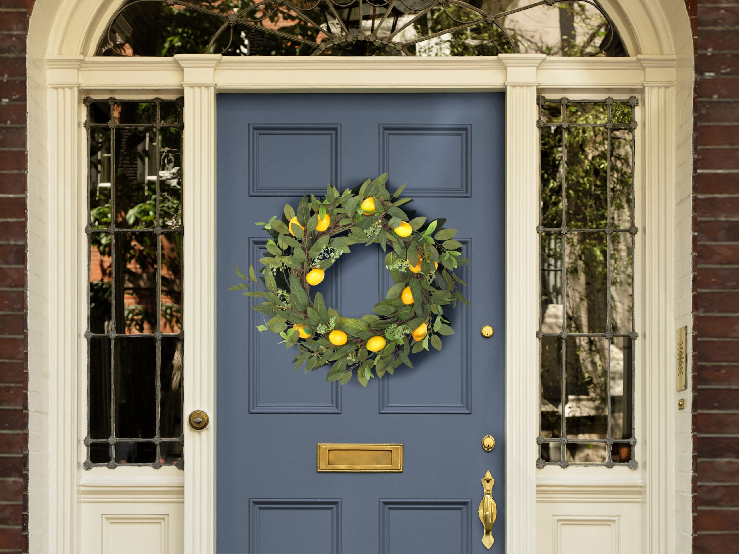 Perinteinen ovikranssi keltaisilla yksityiskohdilla. Tämä kaunis kranssi, joka on koristeltu erilaisilla korostuksilla ja vihreällä lehdistöllä, antaa ovellesi eloisan sekä raikkaan ilmeen. Pirteän keltaisen ja luonnollisen vihreän yhdistelmä luo leikkisän mutta tyylikkään tunnelman. Kranssi sopii täydellisesti lisäämään iloisen säväyksen mihin tahansa tilaan, ja luo kutsuvan tunnelman ympäri vuoden.