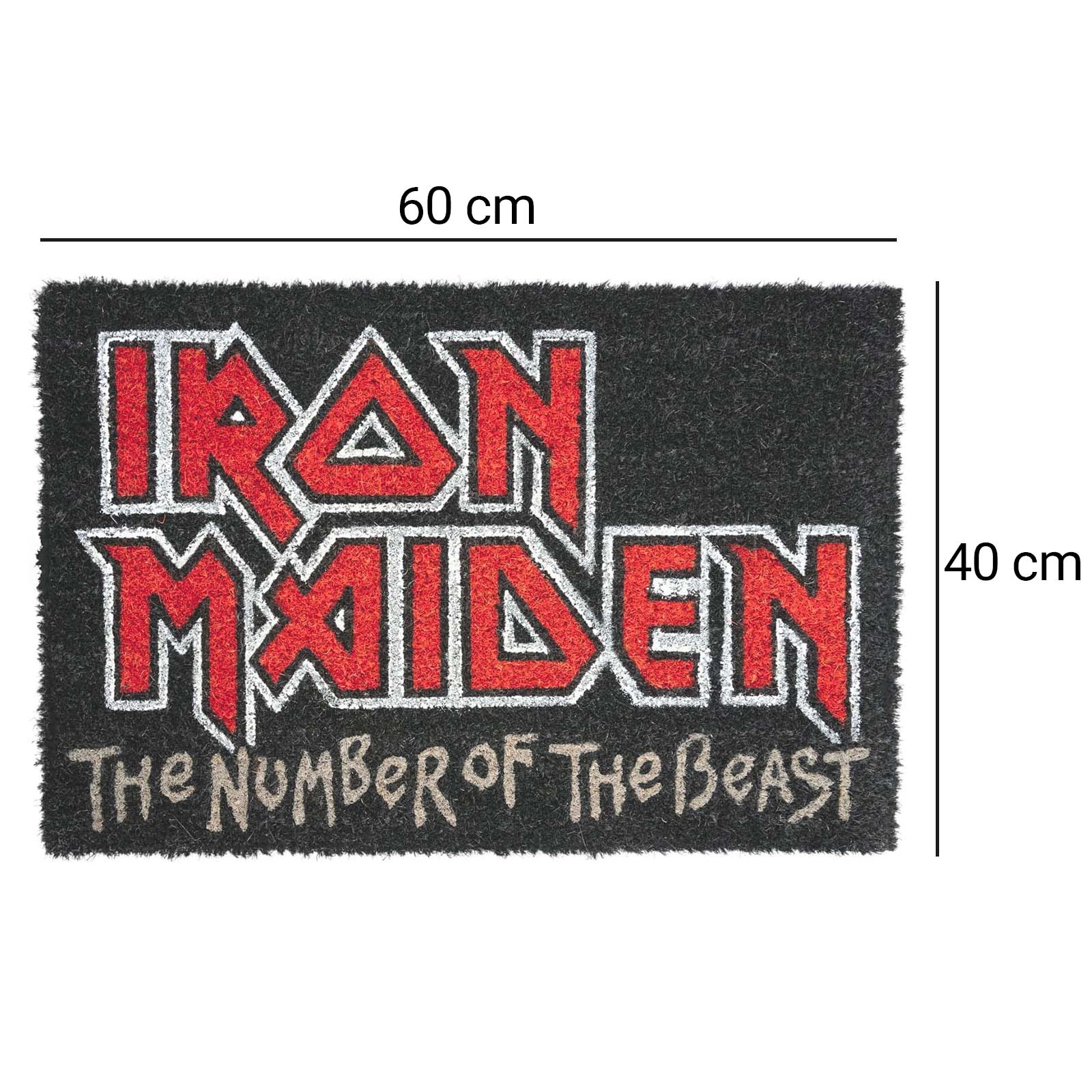 Näytä ylpeänä intohimosi heavy metallia kohtaan tällä Iron Maiden "The Number of the Beast" -matolla. Kestävästä kookoskuidusta ja liukumattomasta PVC-taustasta valmistettu matossa yhdistyvät kulttimainen muotoilu ja toiminnallisuus. Se sopii täydellisesti lisäämään tyyliä sisäänkäyntiisi ja pitämään kotisi puhtaana, ja se miellyttää kaikkia legendaarisen bändin faneja. Rockin sisustukseen välttämätön!
