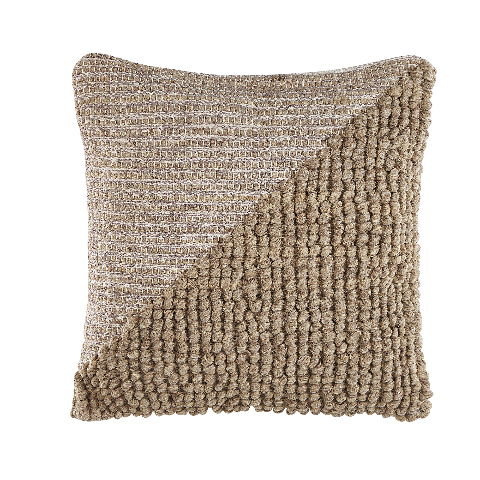 Beige koristetyynysetti. Tämä koristetyynysetti tarjoaa yksinkertaisen ja nopean tavan päivittää olohuoneen tai makuuhuoneen sisustusta. Niiden kuvioidut tyynynpäälliset kahdessa beigen sävyssä ovat miellyttävän tuntuisia, ja neutraalin värinsä ansiosta ne sopivat helposti useisiin sisustustyyleihin. Tyynynpäällisten etupuoli on villaa, kun taas yksivärinen takapuoli on puuvillaa ja siinä on piilotettu vetoketju.