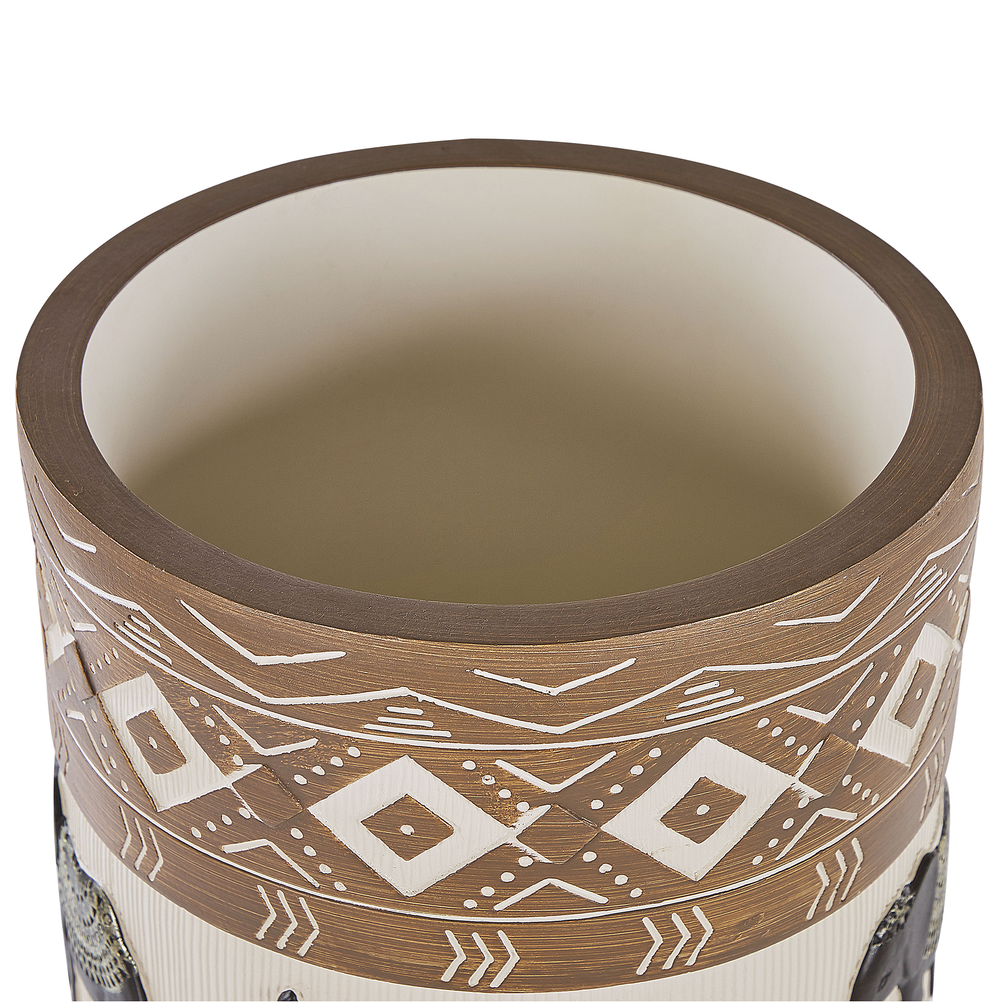 Boho-tyylinen pyöreä kukkaruukku. Kaunis laadukkaista materiaaleista käsin valmistettu kukkaruukku tuo eksoottista tunnelmaa kotiisi. Ruukussa on veikeitä elefantin kuvia, joten se on mukava piristysruiske perinteiseenkin sisustukseen. Erityisen hyvin ruukku sopii vintage- ja boho-tyylisiin sisustuksiin.