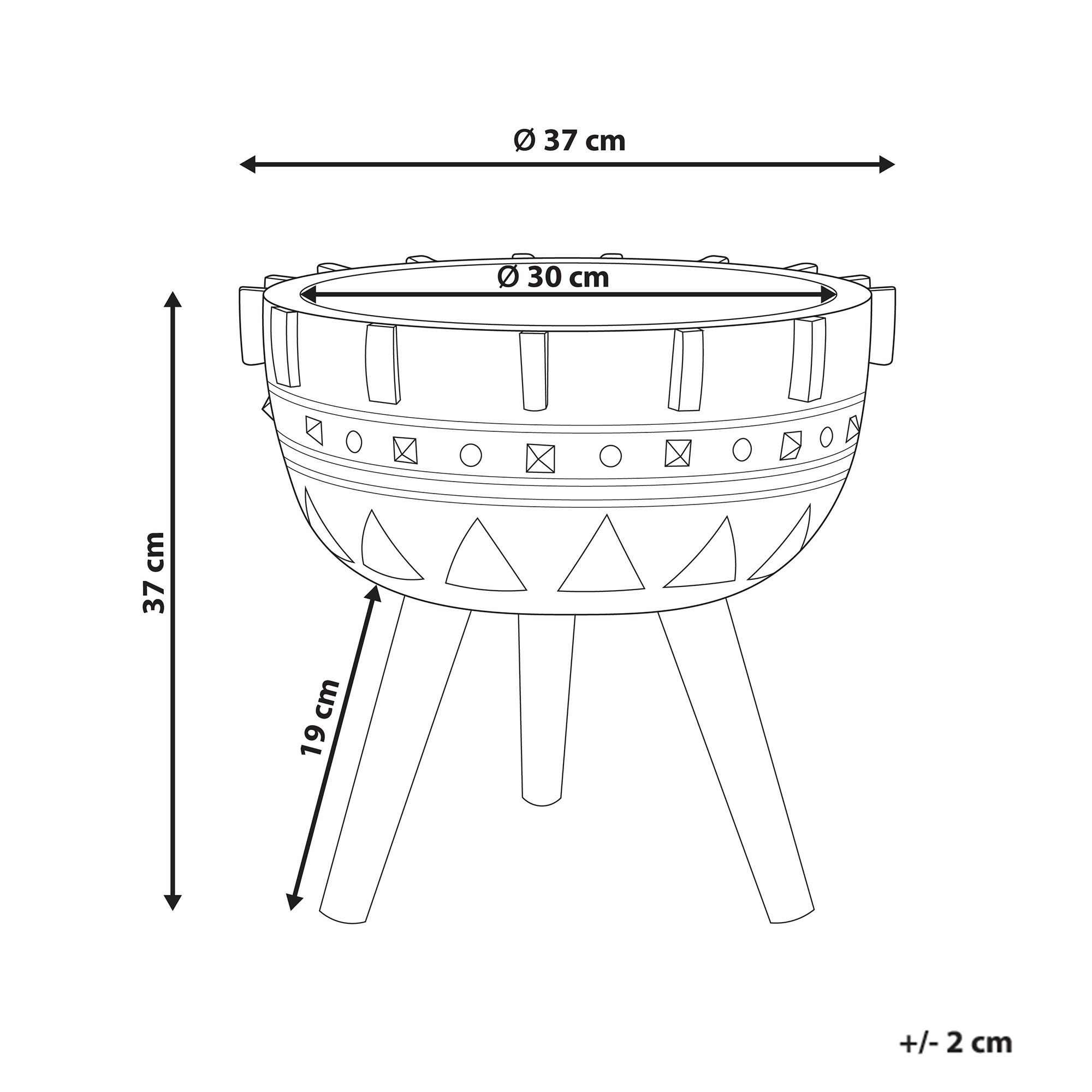 Kuvioitu kolmijalkainen kukkaruukku. Kohota sisustustasi tällä käsinmaalatulla kukkaruukulla, jossa on ainutlaatuinen, persoonallinen kuviointi. Vankat puujalat takaavat vakauden, ja vedenpitävä materiaali tekee siitä monipuolisen kappaleen sekä sisä- että ulkotiloihin. Korostaapa ruukku sitten maalaishenkistä olohuonetta tai boho-tyylistä puutarhaa, se on täydellinen valinta koristamaan suosikkikasviasi.