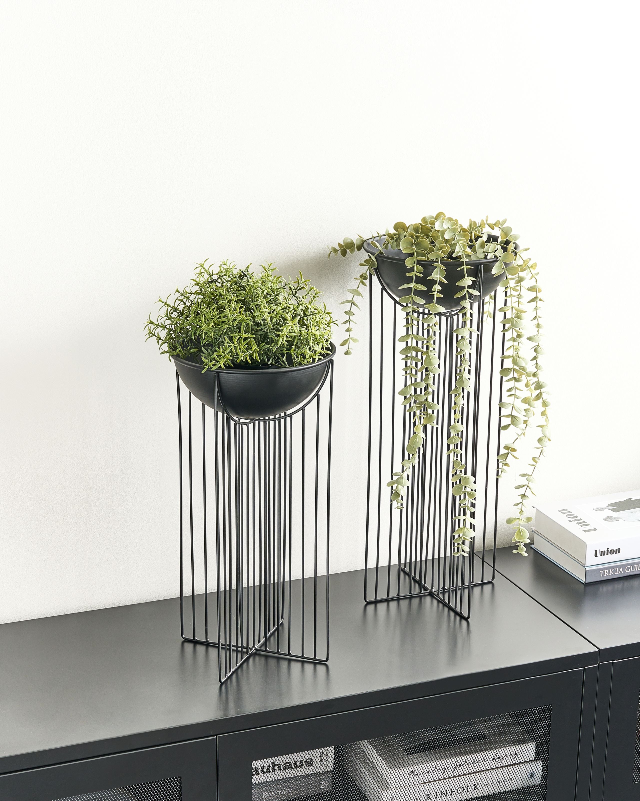 Korotettu kukkaruukkusetti 2 kpl FICARIA metalli 22 cm Musta