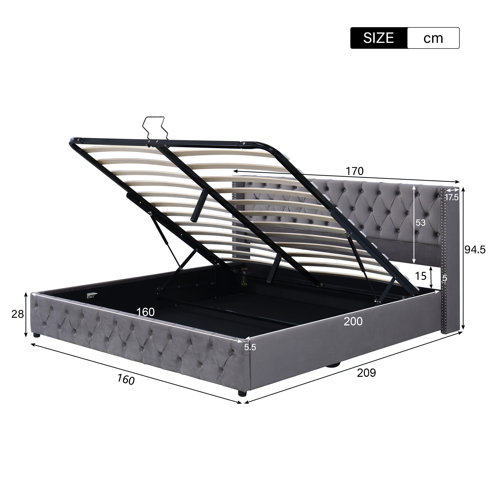 Sängynlaatikon toiminto: Hydraulinen sängynlaatikon säilytystoiminto, hydraulinen vetotangon suunnittelu, mahdollistaa sängyn pinnan helpon nostamisen ja tyynyjen, peittojen, sesongin ulkopuolisten vaatteiden ja pienten tavaroiden säilyttämisen sänkylaatikossa, mikä on hyvä säilytystila. Lisäksi sängyn pohja on vuorattu mustalla kudomattomalla kankaalla, joka suojaa kosteudelta ja varmistaa, että sängyn alla säilytetyt tavarat pysyvät puhtaina.
