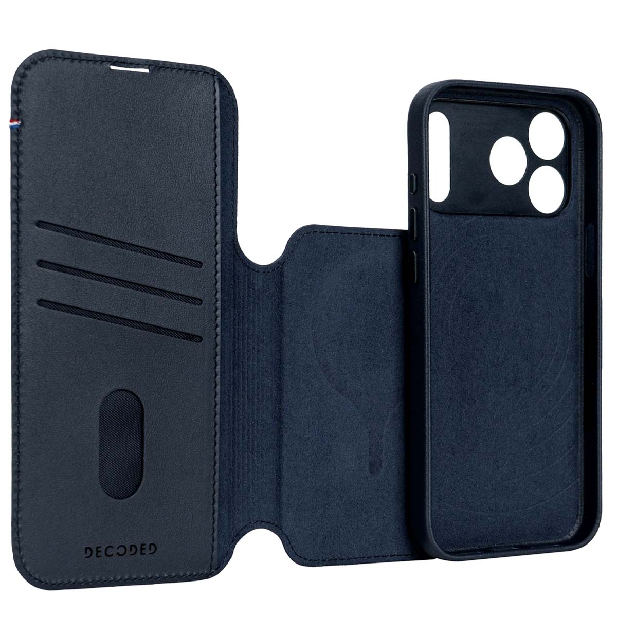 Tämä tummansininen foliokotelo iPhone 17 Pro Max -puhelimelle on valmistettu täysnahkaisesta nahasta, joka ajan myötä saa patinaa. Irrotettava sisäkuori, joka on vahvistettu polykarbonaattipohjalla ja TPU-kehyksellä, vaimentaa iskuja ja suojaa pudotuksilta jopa 1,2 metristä. Sisällä on kolme paikkaa luottokorteille ja erillinen lokero käteiselle. Tämä tummansininen foliokotelo iPhone 17 Pro Maxille on valmistettu täysnahasta, joka saa luonnollisen patinan käytön myötä. Irrotettavassa sisäkuoressa on polykarbonaattipohja ja TPU-kehys, jotka vaimentavat iskuja ja suojaavat pudotuksilta jopa 1,2 metristä. Sisäpuolella olevat kolme aukkoa sopivat luottokorttien turvalliseen säilyttämiseen, ja erillinen lokero on ihanteellinen seteleiden säilyttämiseen. Sisäinen mikrokuituvuori suojaa iPhonen takapintaa hankautumiselta ja mikronaarmuilta. 1 mm:n korotettu reuna näytön ympärillä estää suoran kosketuksen tasaisiin pintoihin ja vähentää naarmujen riskiä.