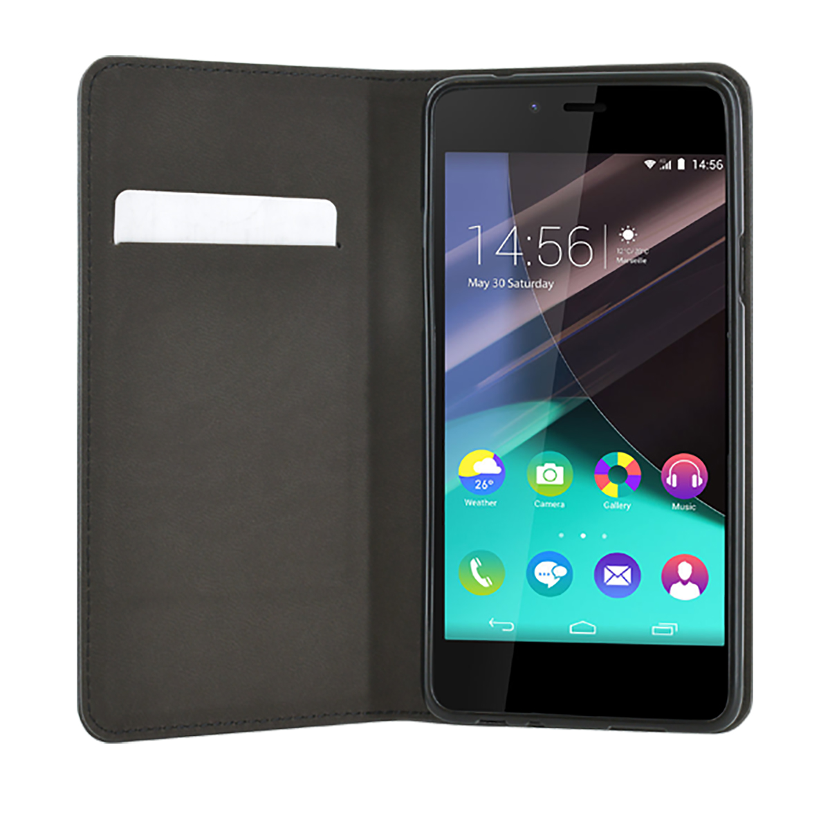 Anna Wiko Highway Pure -puhelimellesi tyylikäs ja toimiva suoja tällä mustalla foliokotelolla. Sileän nahkapinnan, integroidun korttipidikkeen ja ihanteellisen tukiasennon ansiosta siinä yhdistyvät mukavuus, tyyli ja käytännöllisyys. Se on suunniteltu sopimaan laitteeseesi täydellisesti ja suojaa tehokkaasti näyttöä ja kulmia.
