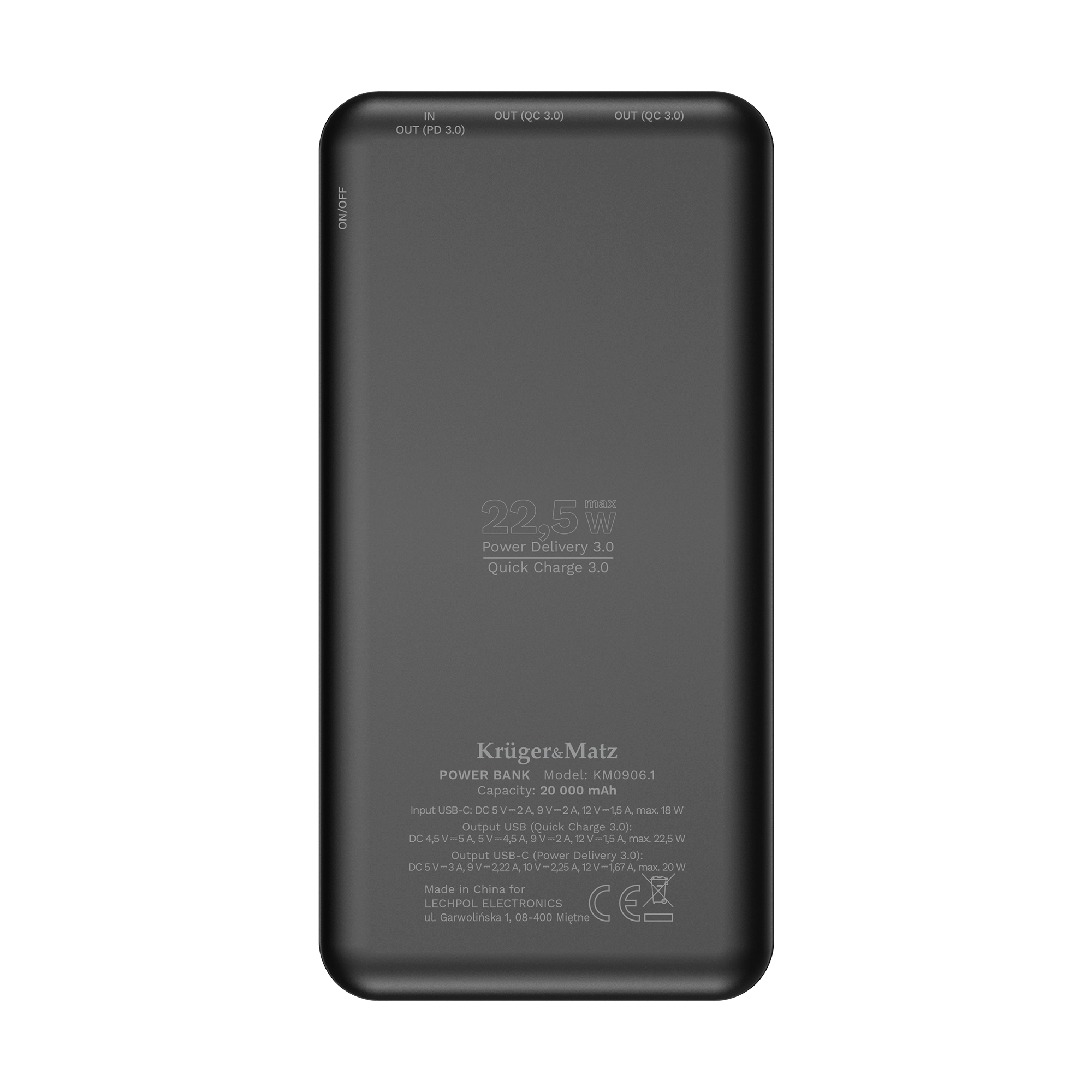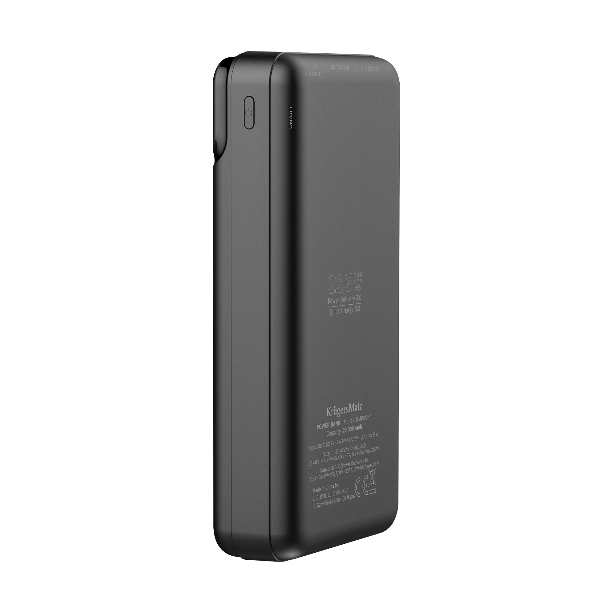 <p>Jos vaativa kenttätyösi tarkoittaa, että sinun on ladattava älypuhelintasi tai tablettiasi useita kertoja päivässä, tarvitset todella suuren varavirtalähteen! Valitse Kruger&Matz KM0906.1 <b>20 000 mAh:n litiumpolymeerikennolla,</b> jonka avulla voit ladata älypuhelimesi, tablettisi tai kamerasi useita kertoja. <b>Kahden USB-portin</b> suurikapasiteettisen Kruger&Matz-varavirtalähteen ansiosta voit ladata kahta laitetta samanaikaisesti. Kytke vain kaapeli, niin laite tunnistaa yhteyden automaattisesti ja alkaa toimia.</p>