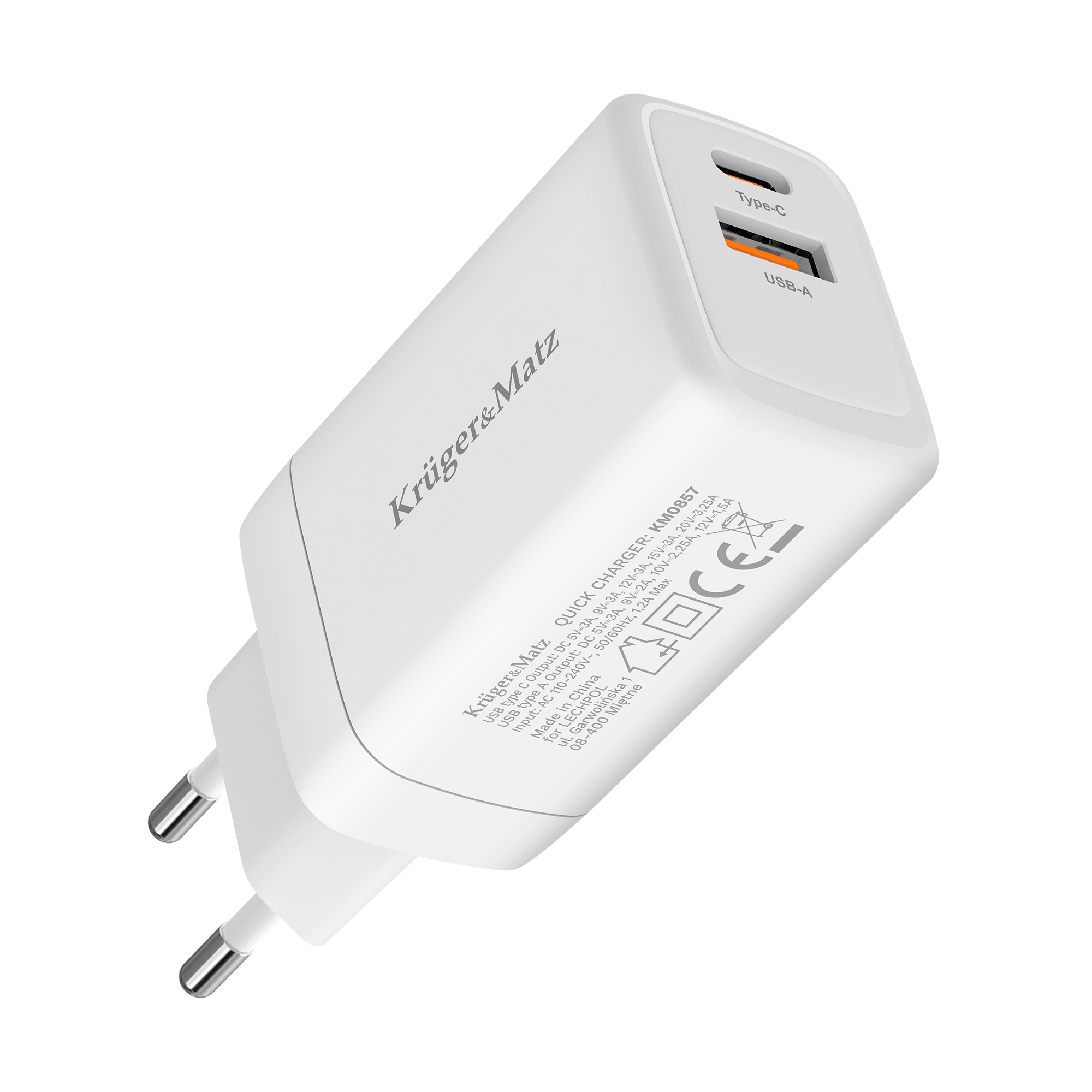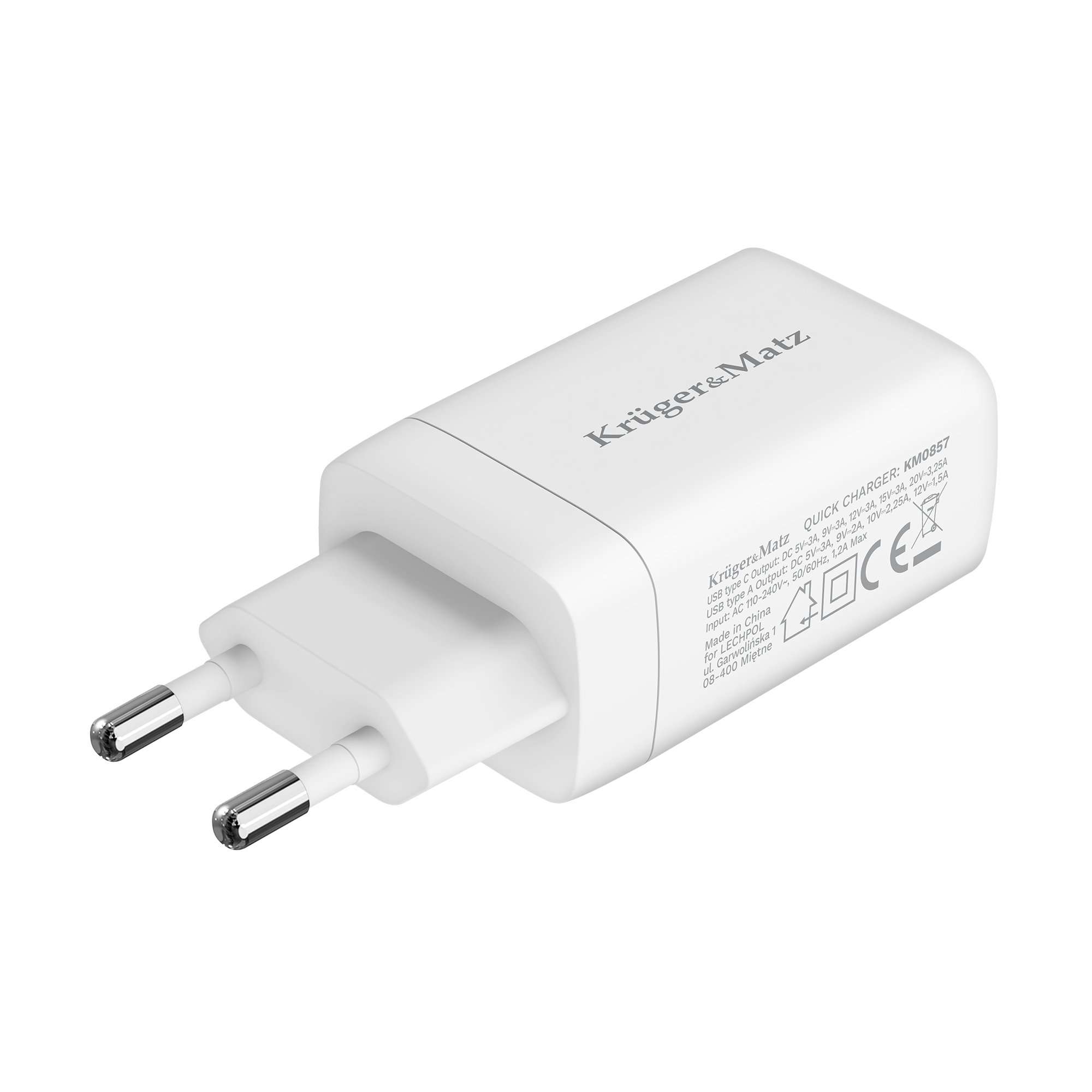 KM0857-laturi tunnistaa automaattisesti kytkettyjen laitteiden parametrit ja säätää optimaalisen virran suojaten niitä vaurioilta. Lisäksi laitteessa on ylilataus- ja ylijännitesuoja.