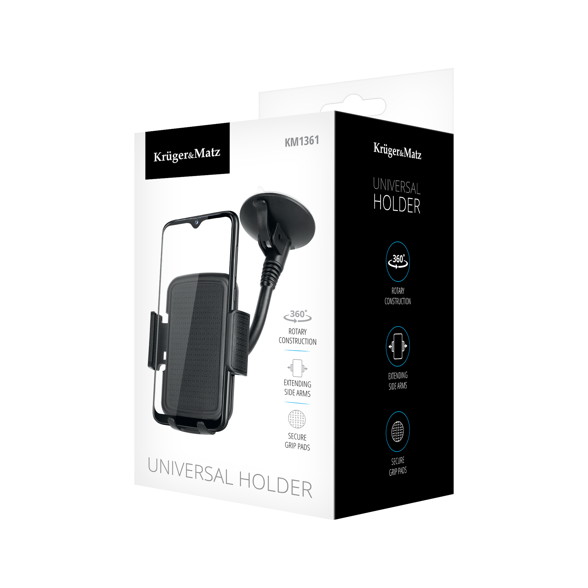 Kruger&Matz autopuhelinteline mahdollistaa sekä sivuvarsien (65-115 mm) että keskiökiinnikkeen säätämisen. Tämä monipuolisuus tekee tästä lisävarusteesta yhteensopivan eri näyttökokojen omaavien mobiililaitteiden kanssa. Huomionarvoista on myös tukeva rakenne ja vahva imukuppi, jotka takaavat puhelimesi vakaan pidon myös epätasaisilla teillä ajettaessa.
