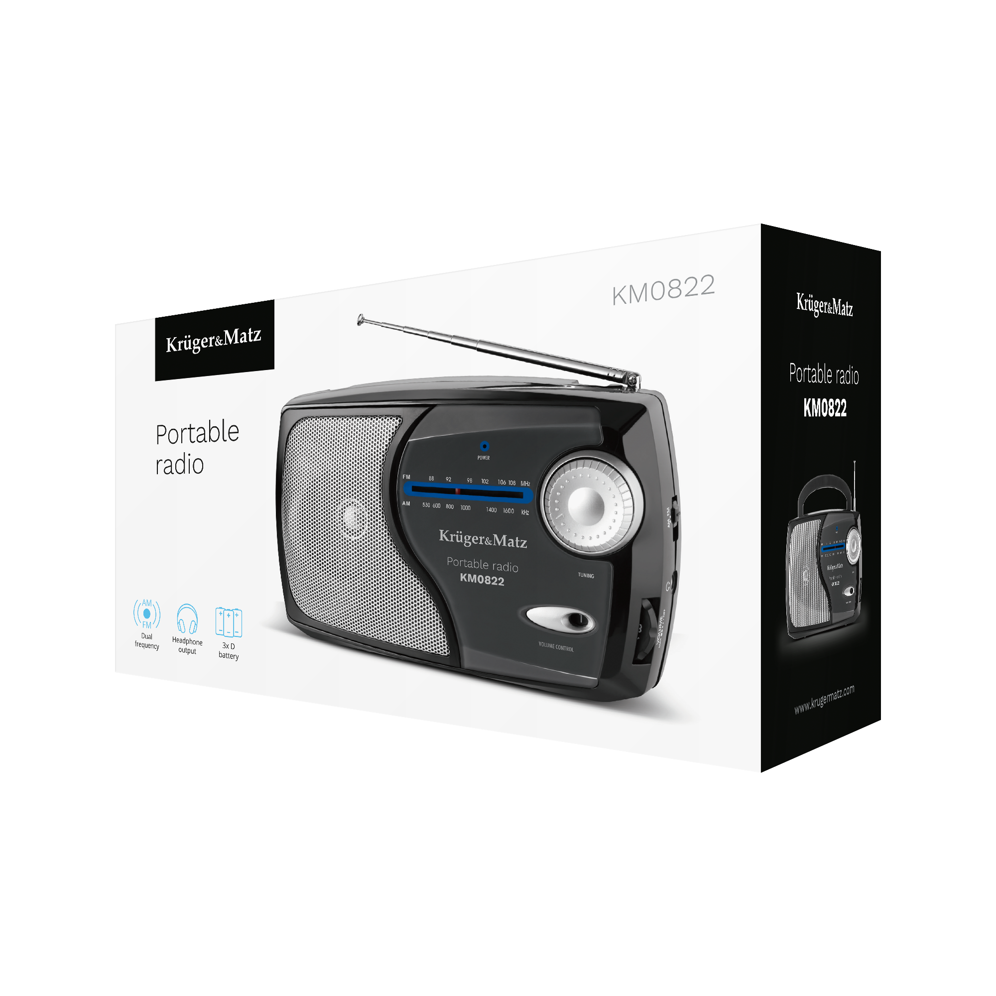 KM 822 -radiossa on analoginen AM/FM-viritin, joka takaa monien suosittujen radioasemien vastaanoton. Selkeän taajuuspaneelin ja kätevän asemanhakupainikkeen ansiosta tätä pientä Kruger&Matz-radiota on erittäin intuitiivinen käyttää.