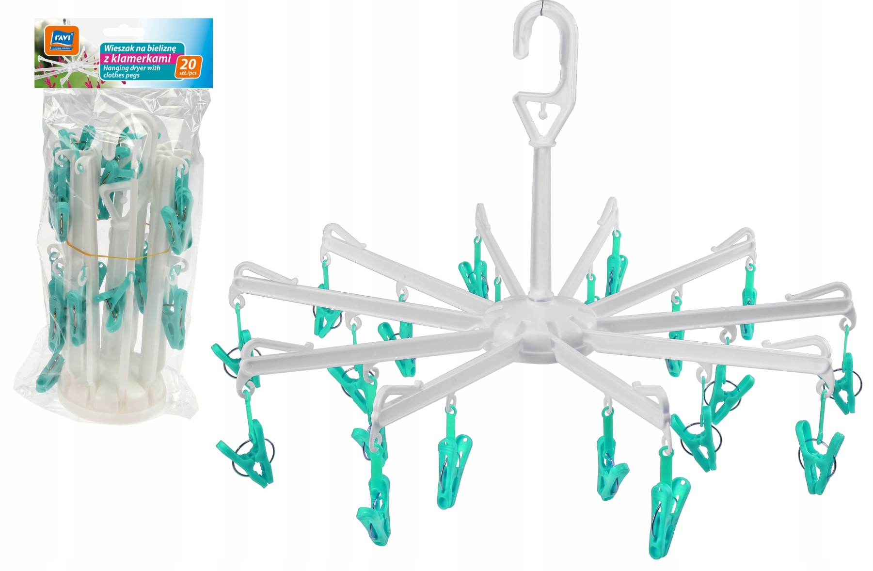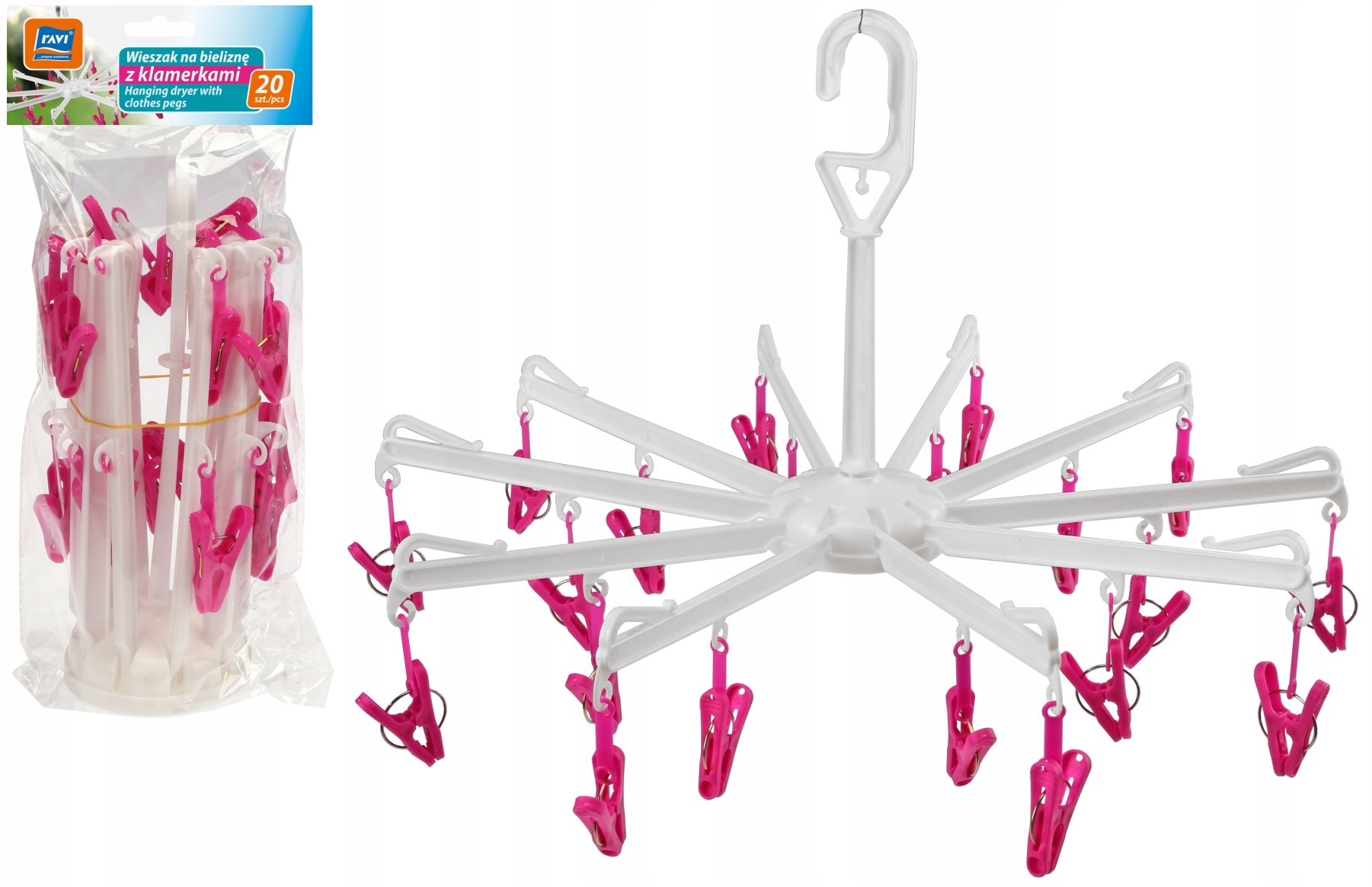 - Sisältää: ripustin + 20 pyykkipoikaa