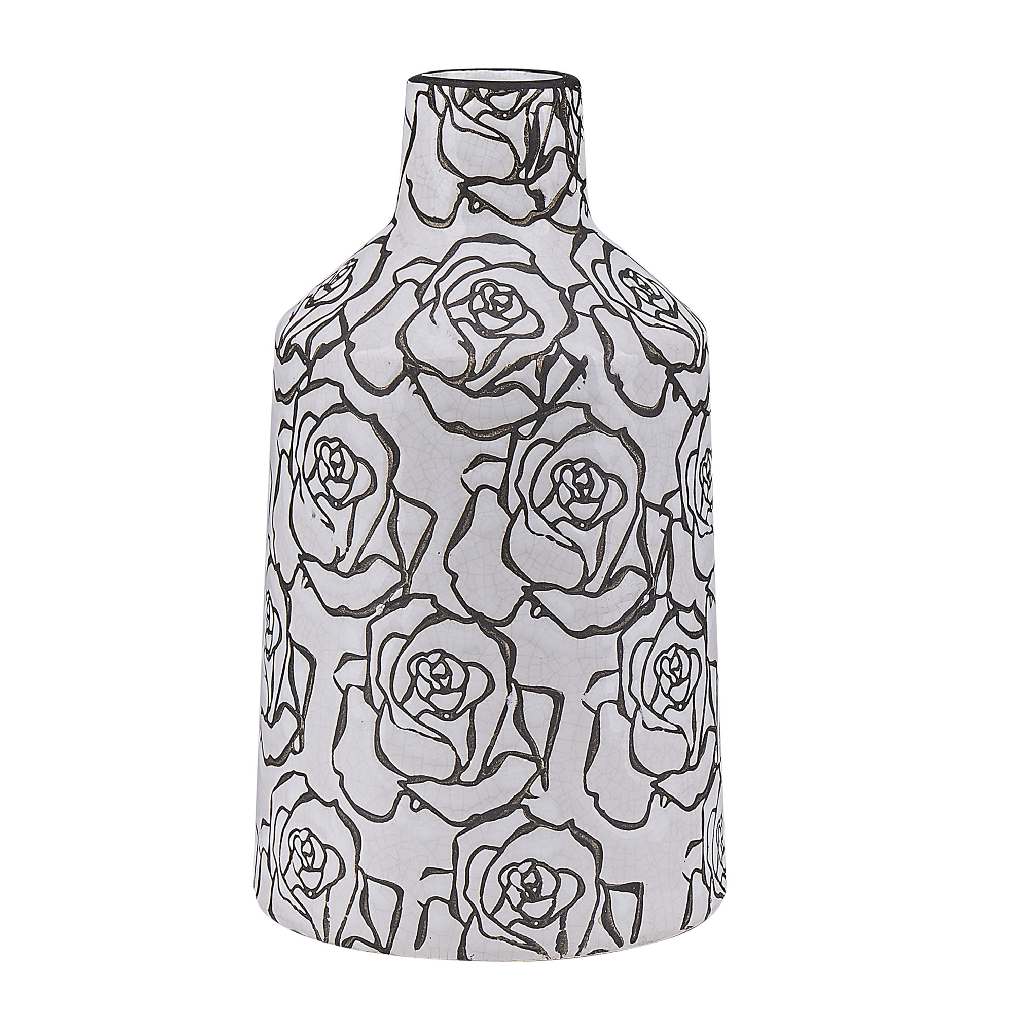 Kaunis kukkavaasi ruusukuvioilla. Käsin laadukkaasta kivitavarasta valmistettu kapeakaulainen kukkamaljakko sopii täydellisesti kuivattujen kasvien ja tuoreiden kukkien esillepanoon. Maljakossa on kaunis ruusukuvio ja hento säröefekti, minkä ansiosta se sopii erinomaisesti romanttisiin tai vintage-tyylisiin sisustuksiin. Neutraalien väriensä ansiosta se on helppo yhdistää monenvärisiin kimppuihin, mutta näyttää upealta myös sellaisenaan.