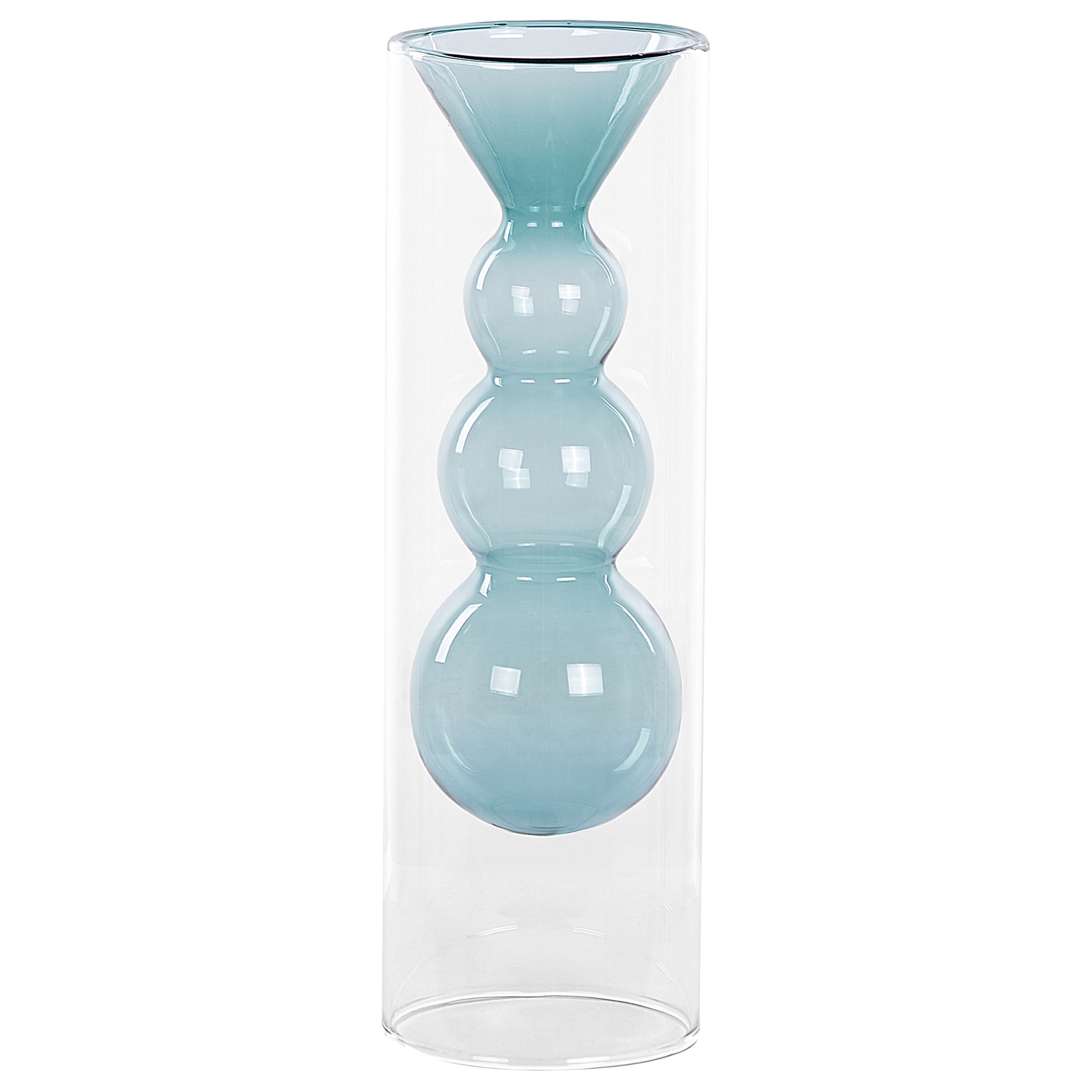 Moderni lasimaljakko. Uudista makuuhuoneesi tai olohuoneesi ilmettä tällä modernilla maljakolla. Maljakon ulkoinen osa on valmistettu kirkkaasta lasista, joka korostaa ainutlaatuista turkoosin väristä sisäosaa kauniisti. Muotoilunsa ja väriensä ansiosta maljakko näyttää hyvältä yhdessä kuivattujen kasvien sekä luonnonkukkien kanssa tai sellaisenaan.