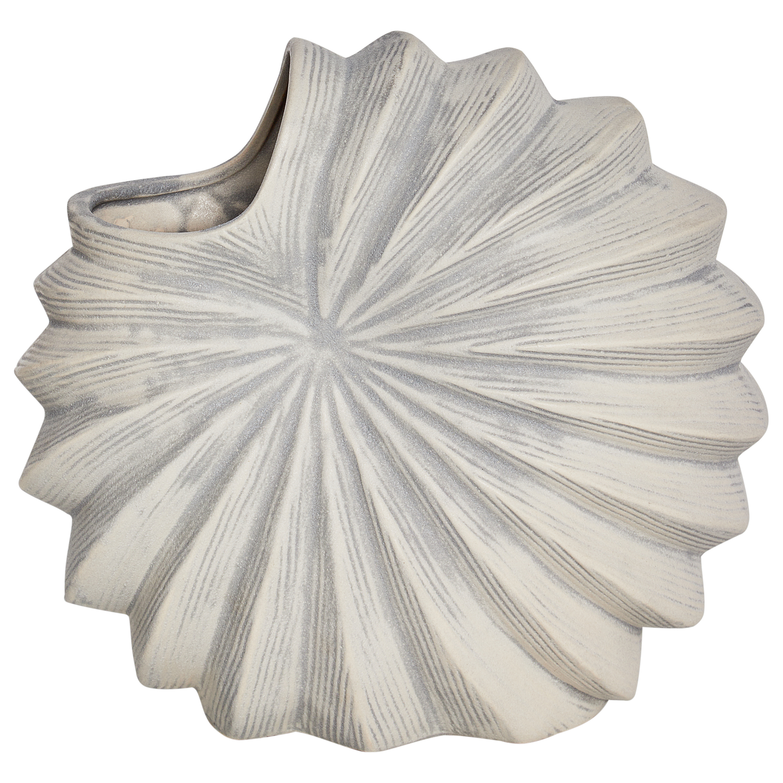 Simpukanmuotoinen koristevaasi. Lisää ripaus nykyaikaista eleganssia kotiisi tällä simpukanmuotoisella kivitavaramaljakolla. Neutraali, trendikäs väri ja sulava, minimalistinen muotoilu sopivat täydellisesti tuoreiden kukkien esillepanoon tai tyylikkäänä aksenttina yksinään. Ainutlaatuinen simpukan muoto korostaa mitä tahansa tilaa hienovaraisella mutta erottuvalla viehätyksellään, mikä tekee siitä monipuolisen lisän sekä moderniin että klassiseen sisustukseen.