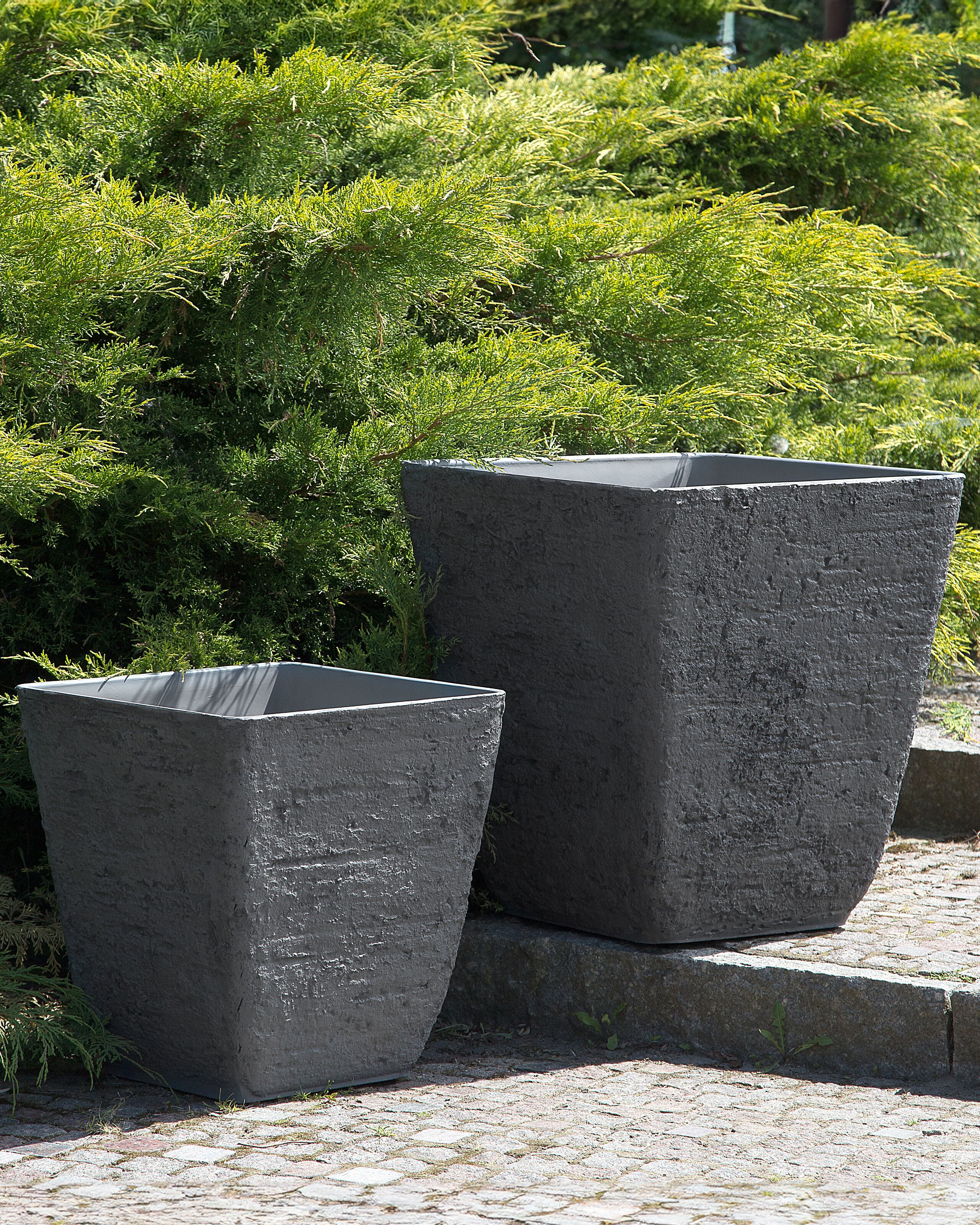 Moderni neliskulmainen ruukku. Päivitä sisä- tai ulkotilasi ilmettä tämän harmaan kukkaruukun avulla. UV-säteilyä ja erilaisia lämpötiloja kestävien materiaalien ansiosta ruukku on sekä kestävä että helppohoitoinen. Ylellinen mutta klassinen muotoilu ja teksturoitu pinta saavat kukkaruukun sopimaan useisiin sisustustyyleihin. Ruukun pohjassa on porattava tyhjennysreikä. Aseta kukkaruukku eteiseen, parvekkeelle tai terassille ja tuo luonnonkauneutta kotiisi.
