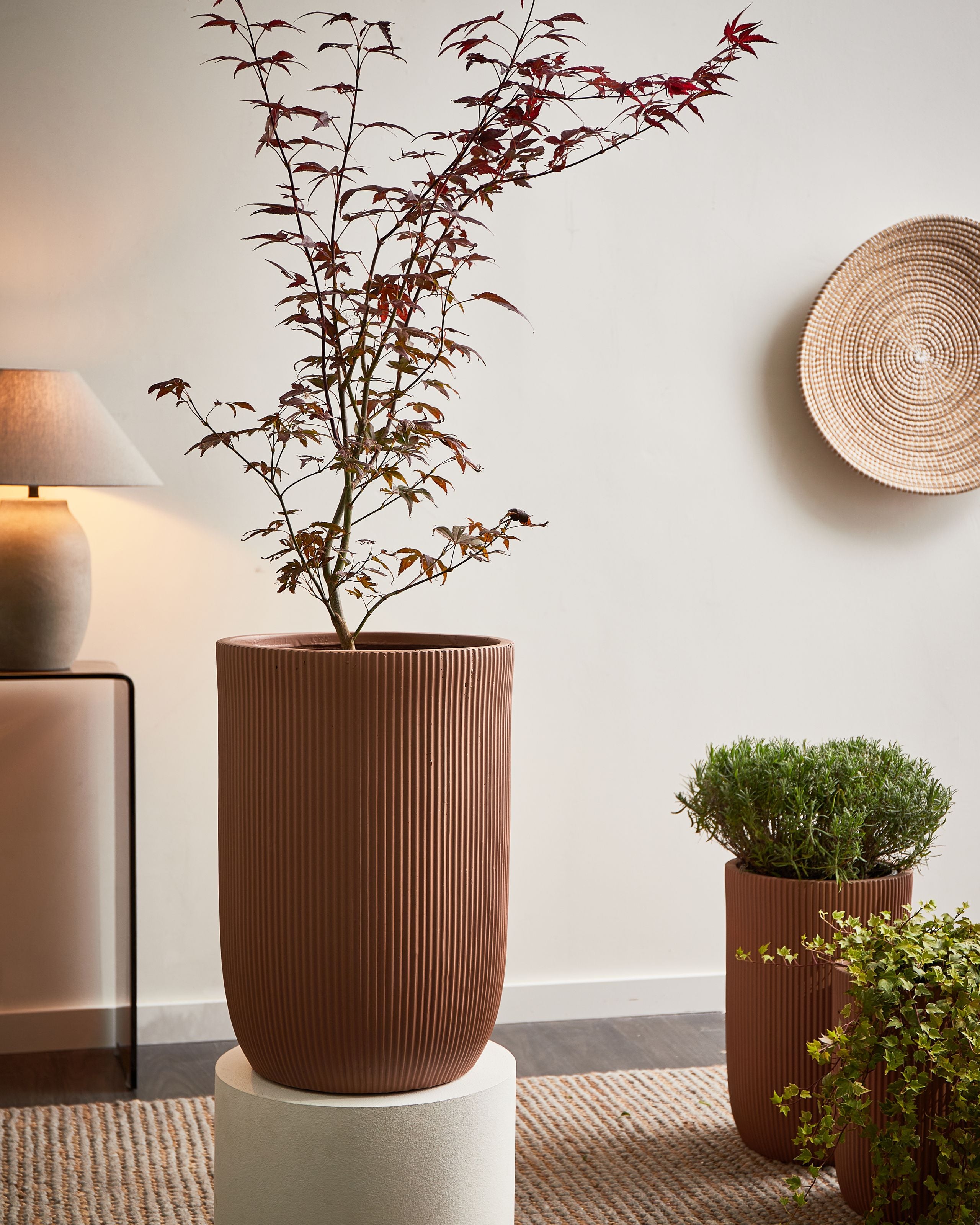 Moderni pyöreä ruukku. Päivitä puutarhaa, terassia tai parveketta tällä modernilla pyöreällä kukkaruukulla, joka on valmistettu kestävästä kuitusavesta. Ulkopintaa koristavat kauniit pystysuorat uurteet, jotka antavat ruukulle tyylikkään ilmeen. Materiaalinsa ansiosta se kestää erinomaisesti UV-säteitä, kosteutta, vaihtelevia sääolosuhteita ja lämpötilan vaihtelua sekä hylkii tahroja. Lisäksi ruukun pohjassa on kätevä, valmiiksi porattu tyhjennysreikä, joka auttaa pitämään kasvit terveinä.