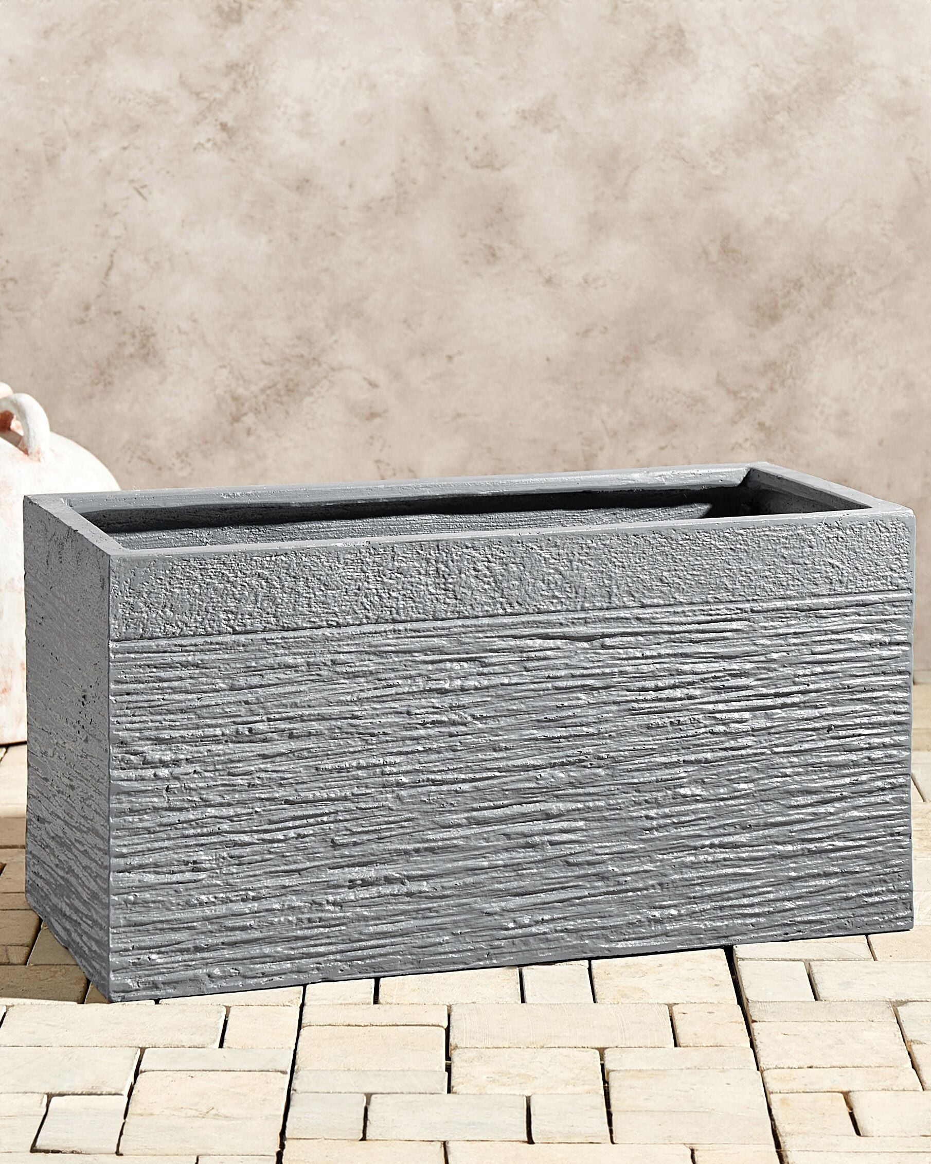 Suorakulmainen ruukku sisä- ja ulkokäyttöön. Kaunis moderni ruukku terassille, puutarhaan tai parvekkeelle. Kivipintainen suorakulmainen ruukku tuo tyylikkyyttä, mutta on samalla luonnollinen lisä ulko- tai sisätiloihin. Kestävän materiaalin ansiosta ruukku kestää hyvin sääolosuhteita ja auringon paistetta.