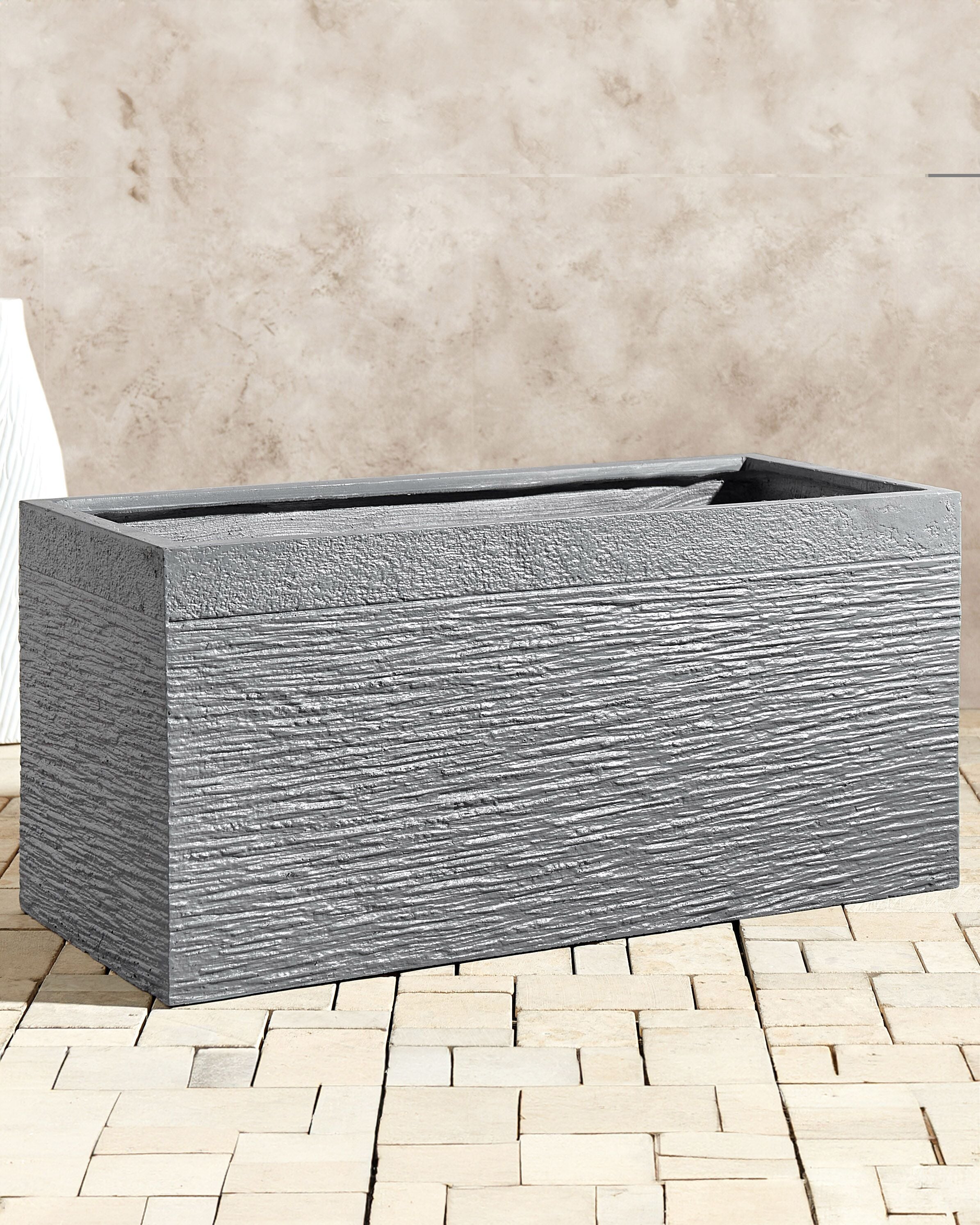Suorakulmainen ruukku sisä- ja ulkokäyttöön. Kaunis moderni ruukku terassille, puutarhaan tai parvekkeelle. Kivipintainen suorakulmainen ruukku tuo tyylikkyyttä, mutta on samalla luonnollinen lisä ulko- tai sisätiloihin. Kestävän materiaalin ansiosta ruukku kestää hyvin sääolosuhteita ja auringon paistetta.