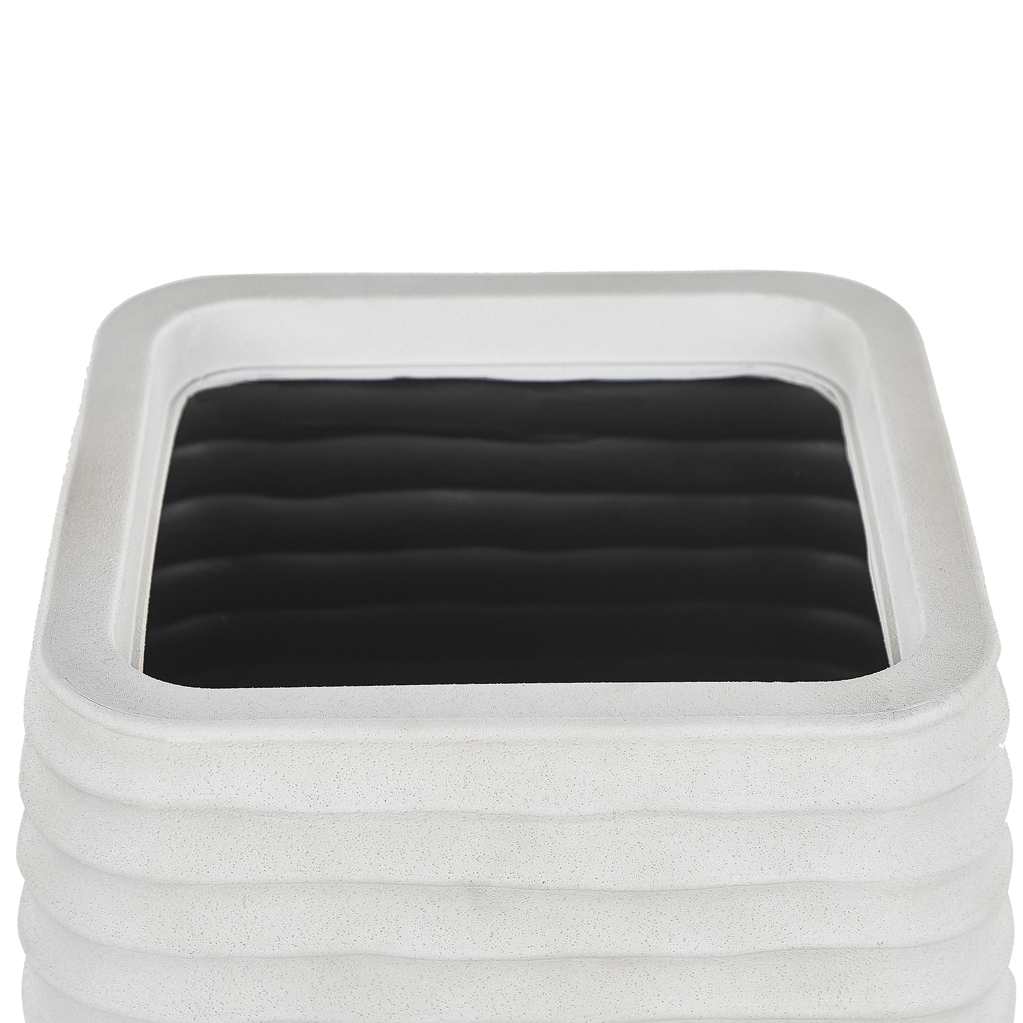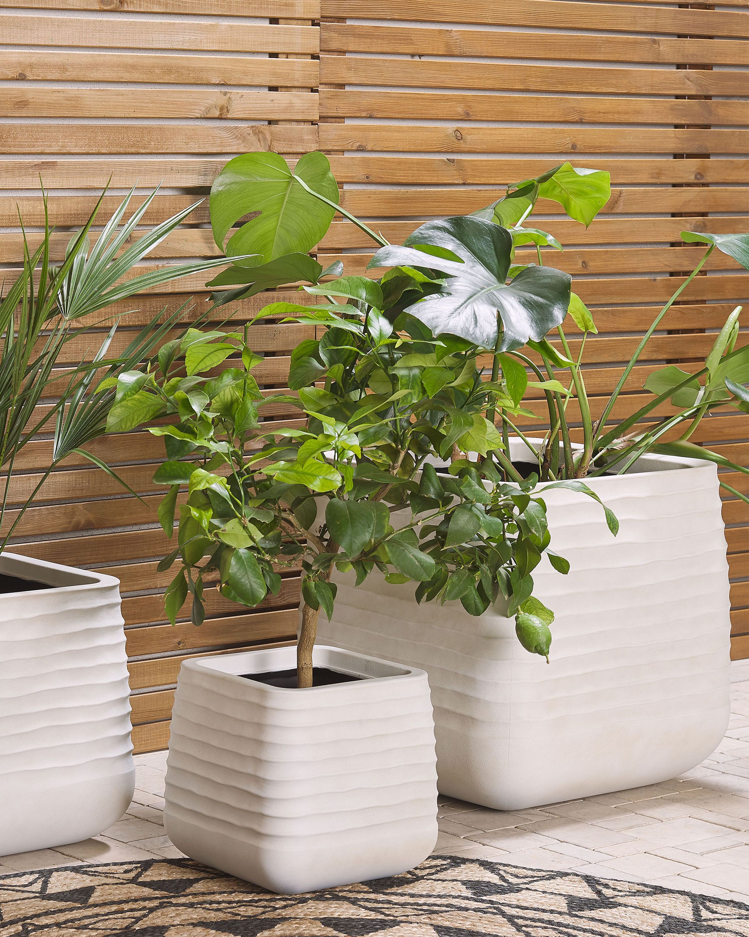 Skandinaavinen kohokuvioitu ruukku. Suuri ja näyttävä kukkaruukku sopii erinomaisesti tilaville terasseille tai patioille, tarjoten tilaa joko yhdelle suurelle kasville tai useammalle pienelle. Ruukku on valmistettu polyhartsista, mikä takaa säänkestävyyden ja virheettömän ulkonäön. Ajaton valkoinen väri ja moderni muotoilu tekevät siitä täydellisen lisän minkä tahansa tyyliseen sisä- tai ulkotilaan. Pohjassa on porausmerkintä tyhjennysreiälle, joka varmistaa ylimääräisen veden poistumisen. Täytä ulkotilasi kasveilla tämän kestävän ja tukevan istutusastian avulla.