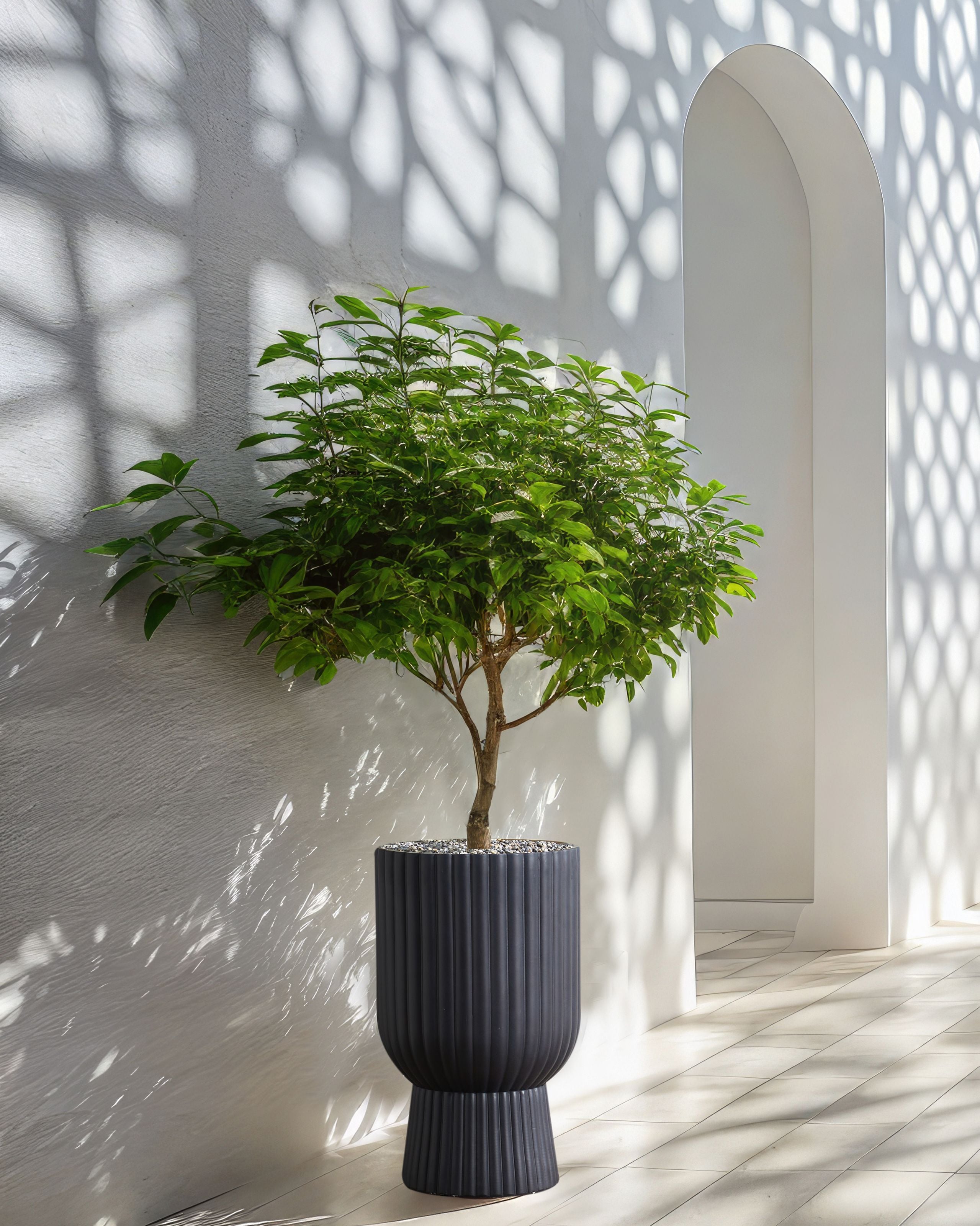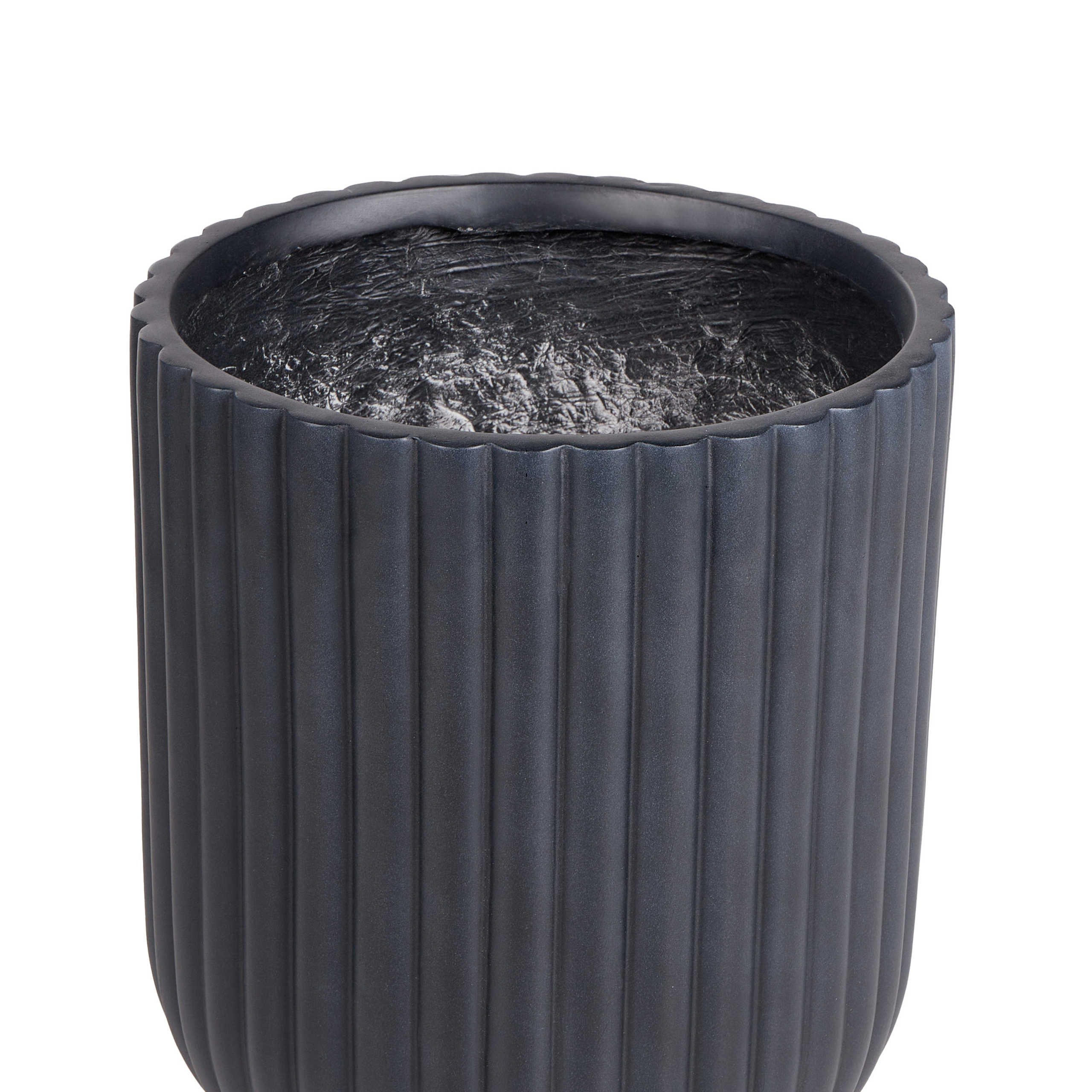 Pyöreä uurrettu ruukku tyhjennysreiällä. Tämä kukkaruukku yhdistää täydellisesti virtaviivaisen muotoilun ja käytännöllisen tyylikkyyden. Hienovaraiset uurteet lisäävät tekstuuria, kun taas korotettu pohja varmistaa, että ruukkuun istutetut kasvit erottuvat muusta sisustuksesta kauniisti. Syvä grafiitinharmaa väri antaa sille hienostuneen, nykyaikaisen ilmeen, joka sulautuu erinomaisesti osaksi erityylisiä sisä- ja ulkotiloja. Se on valmistettu käsin korkealaatuisista materiaaleista kestävyyttä ajatellen ja tarjoaa upean tavan esitellä kasvejasi.