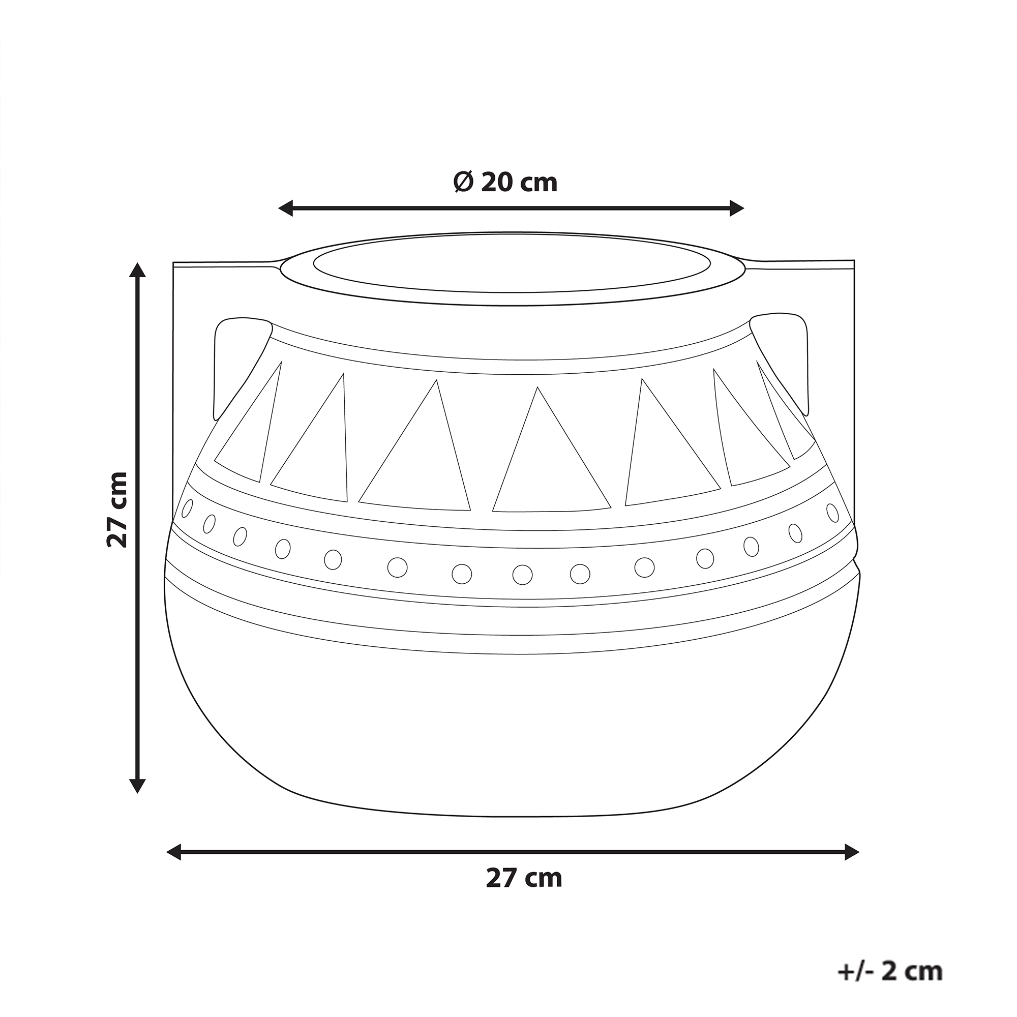 Ominaisuudet: Valinnaisilla tyhjennysrei'illä (sisältää tulpan), Katseen kiinnittävä sisustuselementti, Koristeellinen mutta käytännöllinen, Sopii sekä sisä- että ulkokäyttöön, Poikkeuksellisen vähän huoltoa vaativa, Tarkasti käsinmaalattu kuvio