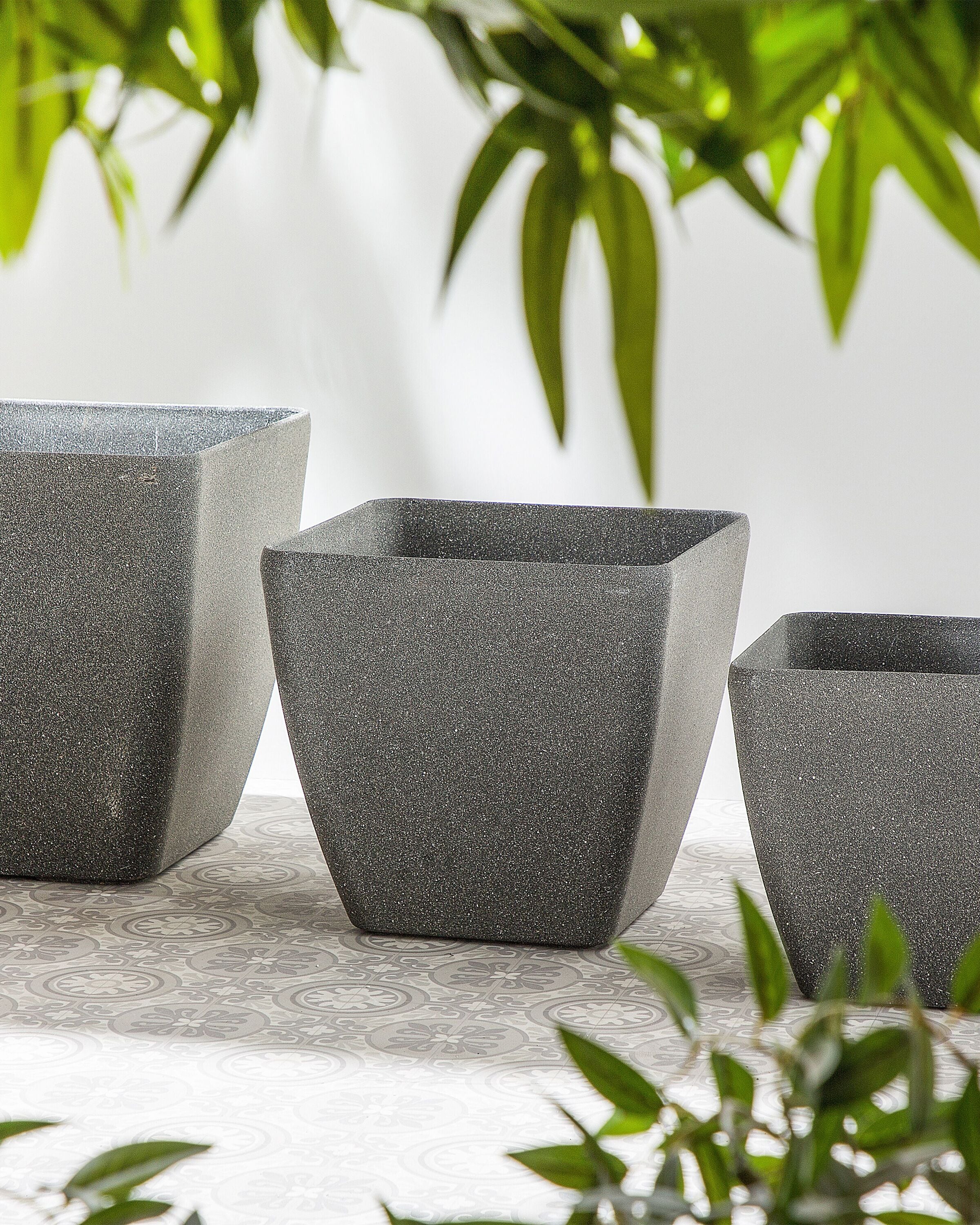 Moderni ruukku sisä- tai ulkokäyttöön. Ylellinen kukkaruukku sulautuu vaivattomasti jokaiseen moderniin, nykyaikaiseen tai perinteiseen sisustukseen. Kestävästä ja laadukkaasta kivijauheen ja polyhartsin sekoituksesta valmistettu ruukku on suunniteltu sekä sisä- että ulkokäyttöön. Klassinen neliskulmainen muoto ja pyöristetyt kulmat korostavat ruukun luonnollisen karheaa viimeistelyä. Neutraalin värinsä ansiosta ruukku tarjoaa tyylikkään kodin suosikkikasveillesi ja toimii minkä tahansa tilan hellävaraisena korostekappaleena, aina olohuoneesta puutarhaan tai parvekkeelle.