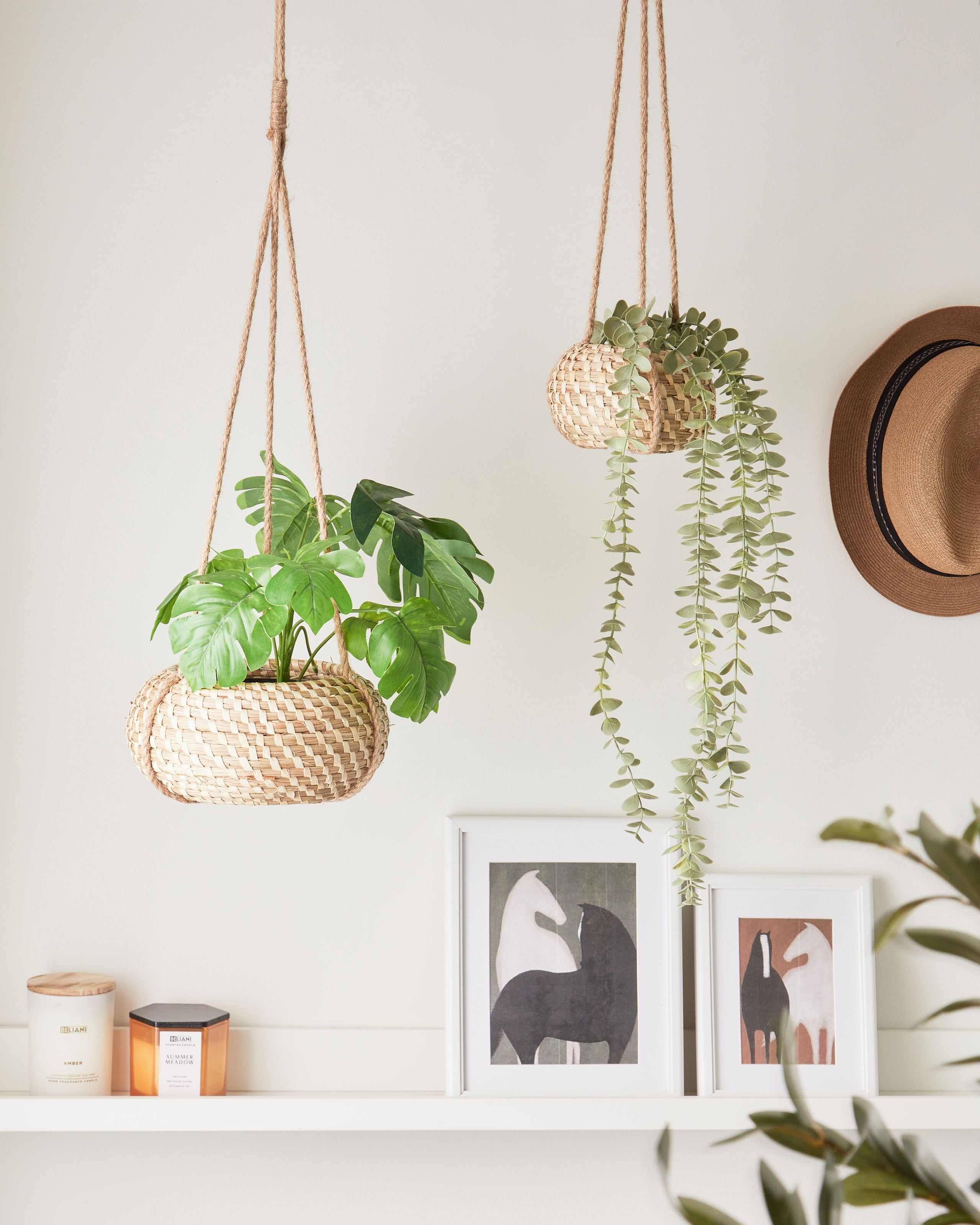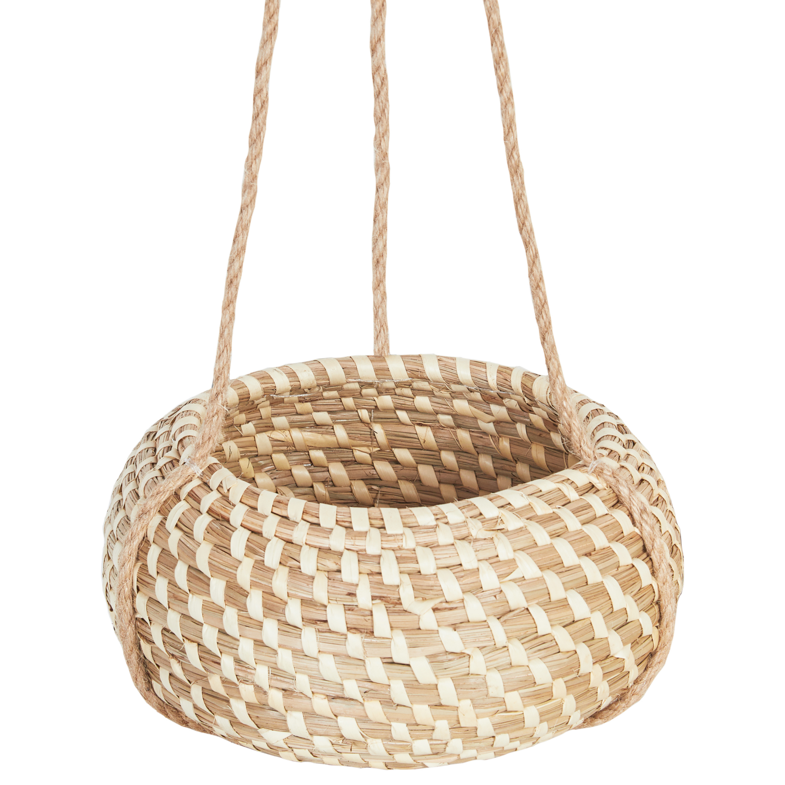 2 boho-tyylistä roikkuvaa kukkaruukkua. Luo kotiisi urbaani viidakko ja lisää enemmän kasveja sisustukseesi tyylistä tinkimättä tämän upean boho-tyylisen ruukkusetin avulla. Ruukut on valmistettu käsin meriruohosta ja ne tuovat uniikin ilmeen moderniin tai boho-tyyliseen sisustukseen, tai mihin tahansa tilaan, joka tuntuu kaipaavan luonnollista ilmettä. Roikkuvien ruukkujen avulla säästät tilaa pöydillä ja lattialla samalla luoden korkeuskontrastia.