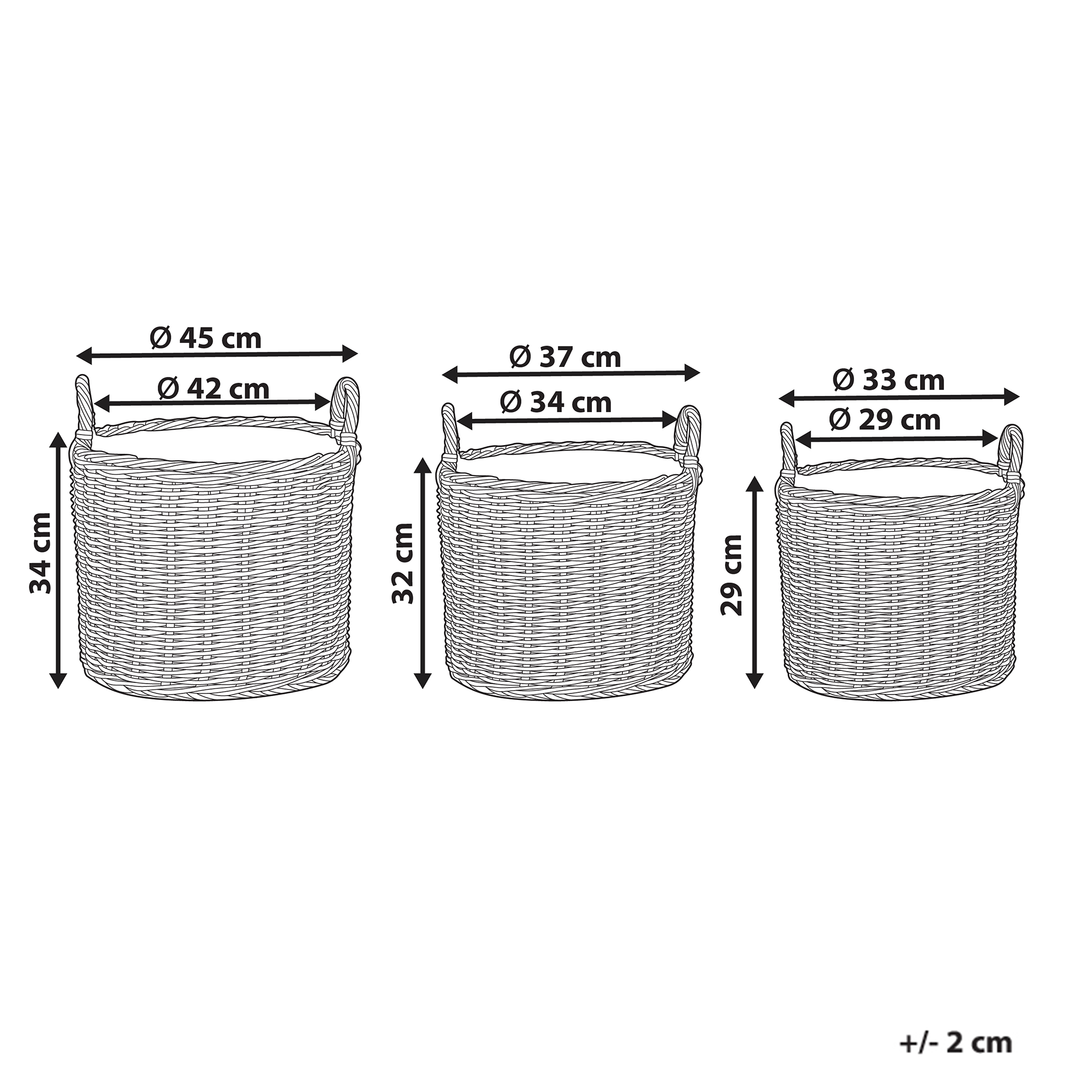 Boheemi kolme korin setti kahvoilla. Tuo sisä- tai ulkotilaasi vihreää vivahdetta tämän kolmen koriruukun setin avulla. Kestävästä polyrottingista punotut ja synteettisellä vuorauksella varustetut korit tarjoavat loistavan paikan erilaisille kasveille ja kukille. Käsintehty punos ja vaaleanruskea sävy antavat kukkaruukuille rustiikkisen ilmeen, joka täydentää mitä tahansa olohuonetta, eteistä tai terassia. Kätevien kahvojen ansiosta niitä on helppo siirtää paikasta toiseen, ja muotoilu mahdollistaa ruukkujen säilytyksen sisäkkäin, kun niitä ei käytetä.