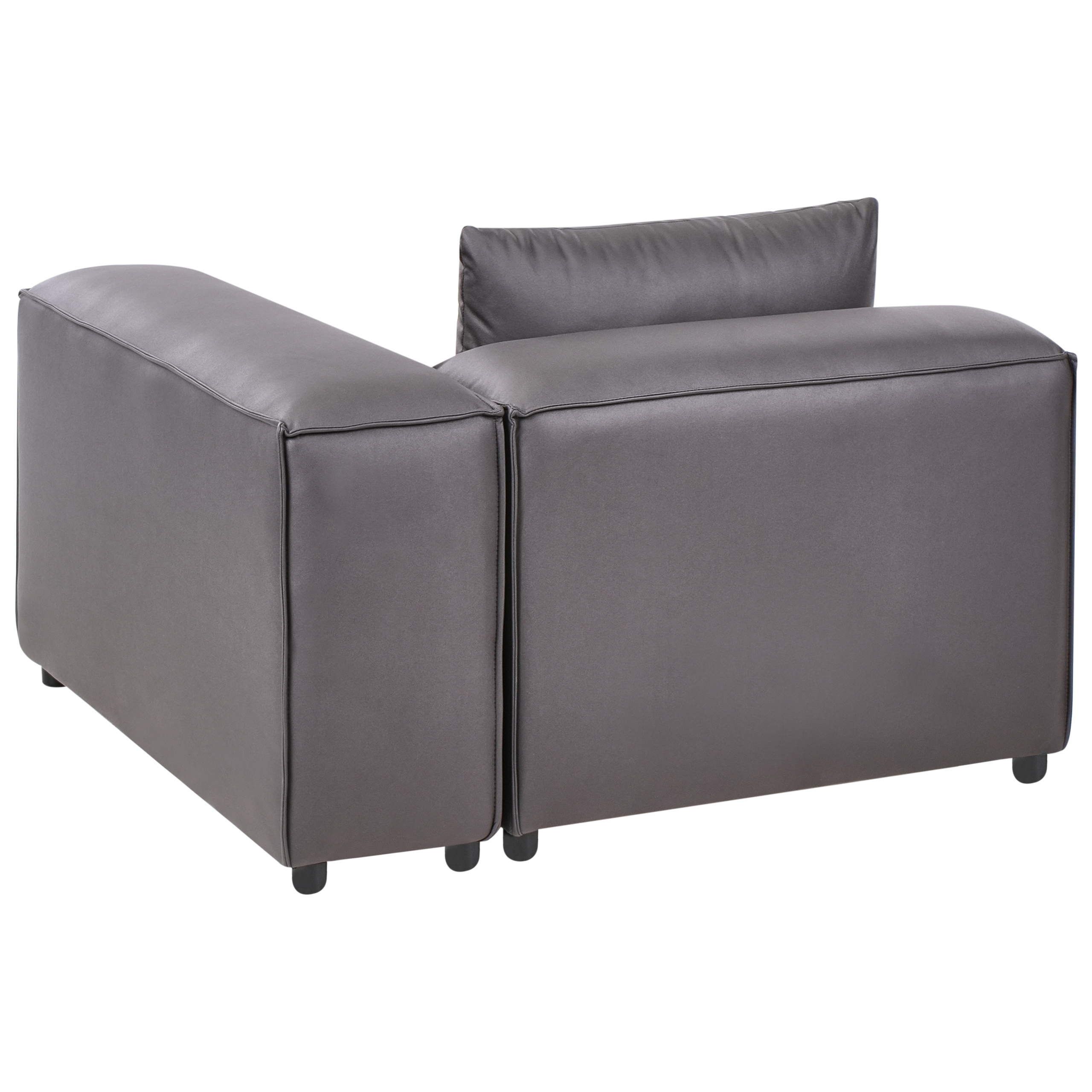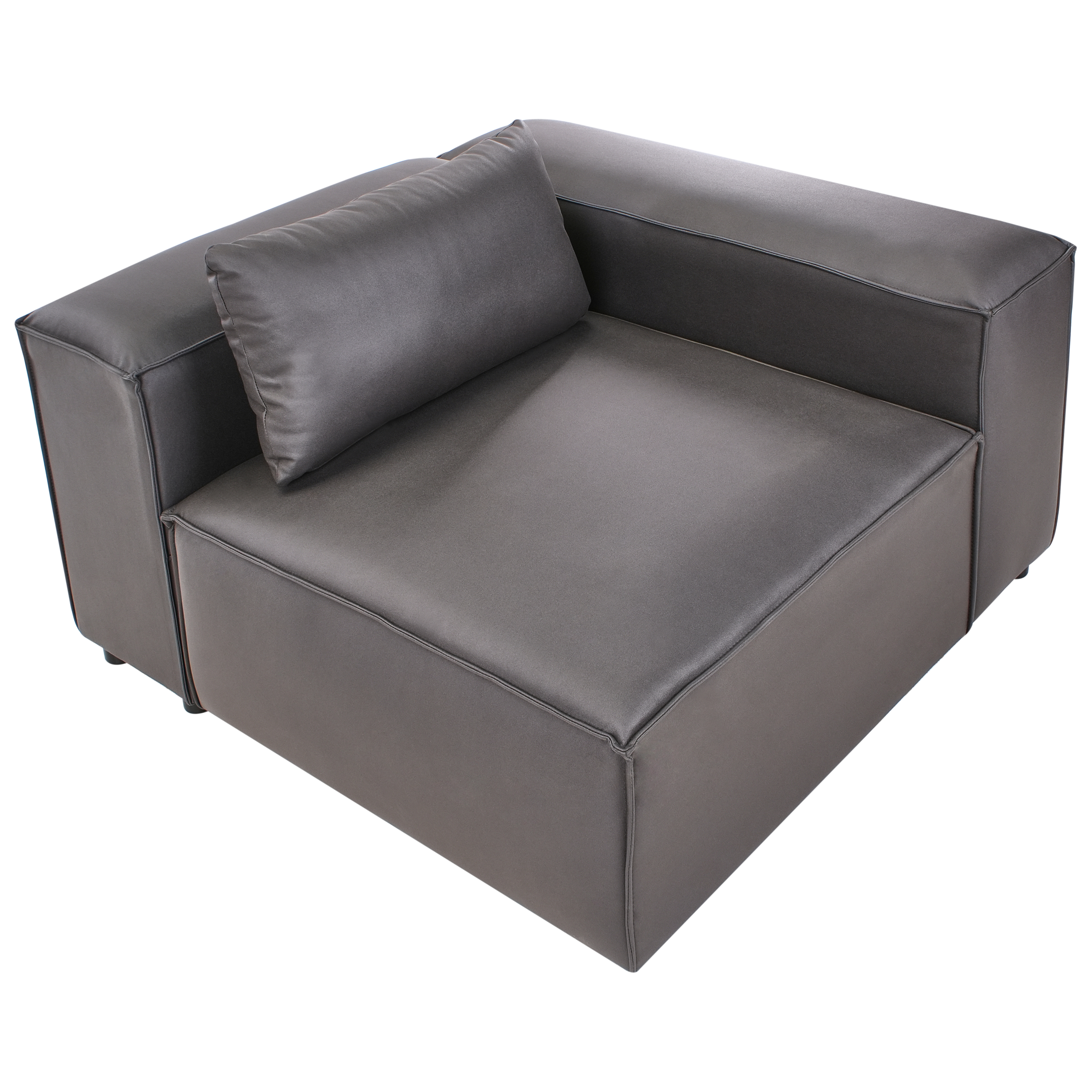 Moderni moduulisohvan kulmapala koristetyynyllä. Tämä monipuolinen ja kompakti kulmamoduuli sopii jokaiseen moderniin sisustukseen. Sen pehmeä ja kestävä vegaaninen ekonahkaverhoilu on helppo puhdistaa, ja se on viimeistelty tyylikkäällä mattapinnalla. Tiheä vaahtomuovitäyte tarjoaa mukavuutta ja säilyttää muodon pitkään, kun taas tukeva rakenne mahdollistaa käytön itsenäisenä istuimena tai moduulisohvan jatkeena. Hillitty mutta virtaviivainen muotoilu täydentää vaivattomasti monenlaisia sisustustyylejä, sopien saumattomasti olohuoneeseen. Se tarjoaa erinomaisen yhdistelmän käytännöllisyyttä ja minimalistista tyyliä.