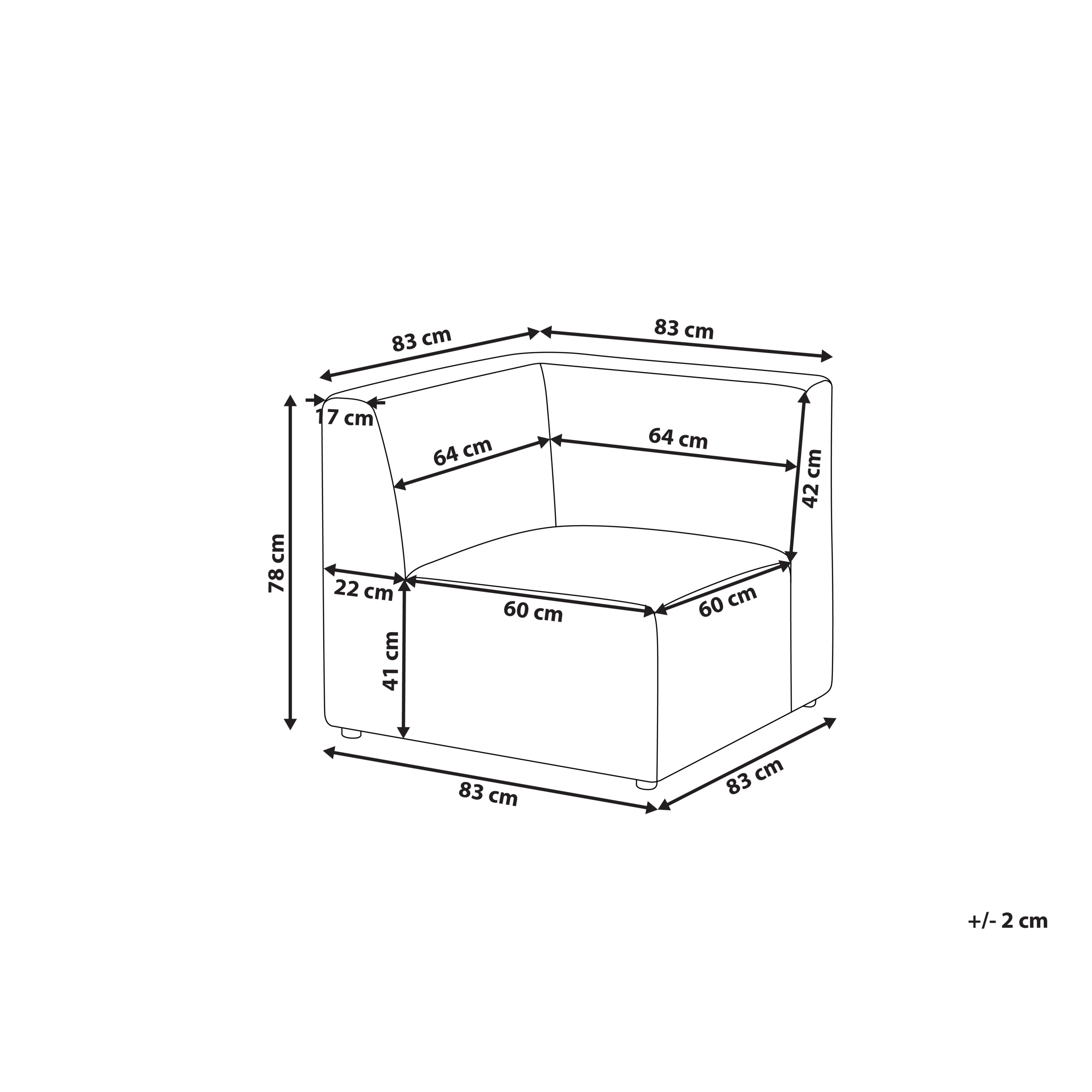 Tyylikäs ja mukava moduulisohvan kulmapala. Tee olohuoneesta tyylikäs ja huoliteltu tällä minimalistisen modernilla kulmamoduulilla. Sen pehmeän tuntuisen vakosamettiverhoilun uurteet antavat istuimelle kauniin ulkonäön, kun taas muovijalat takaavat vakauden ja tukevuuden. Kulmaosa on mahdollista yhdistää malliston muihin osiin tilaan ja tarpeisiin sopivan kokonaisuuden luomiseksi. Nauti monipuolisesta huonekalusta, joka tekee unelmistasi totta – tyylillä.