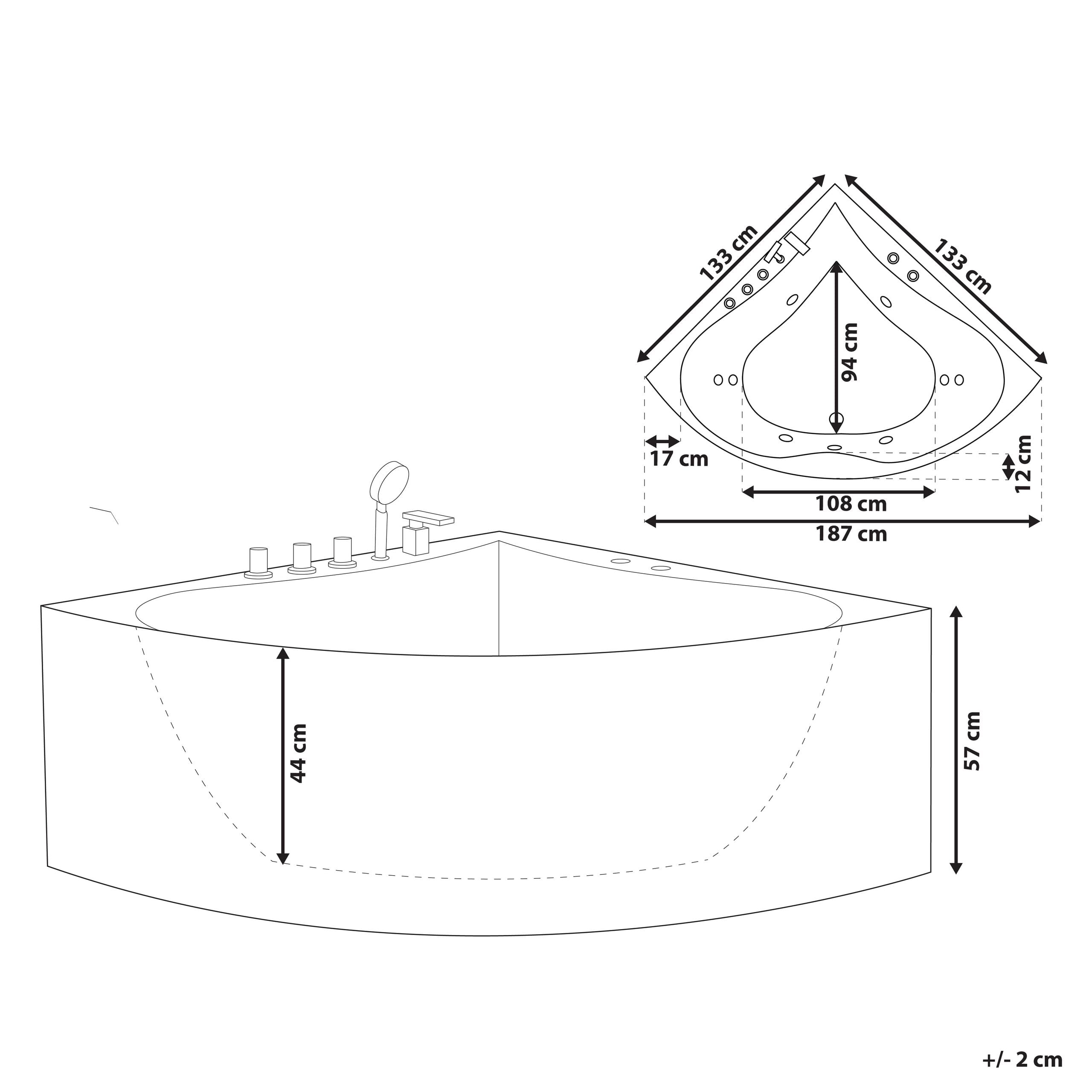 Ominaisuudet: Viemärijärjestelmä ylivuotosäädöllä, Vesisuihkut, jotka tarjoavat hellän hieronnan, Vankka ja iskunkestävä, Loistava paikka rentoutua, Moderni muotoilu