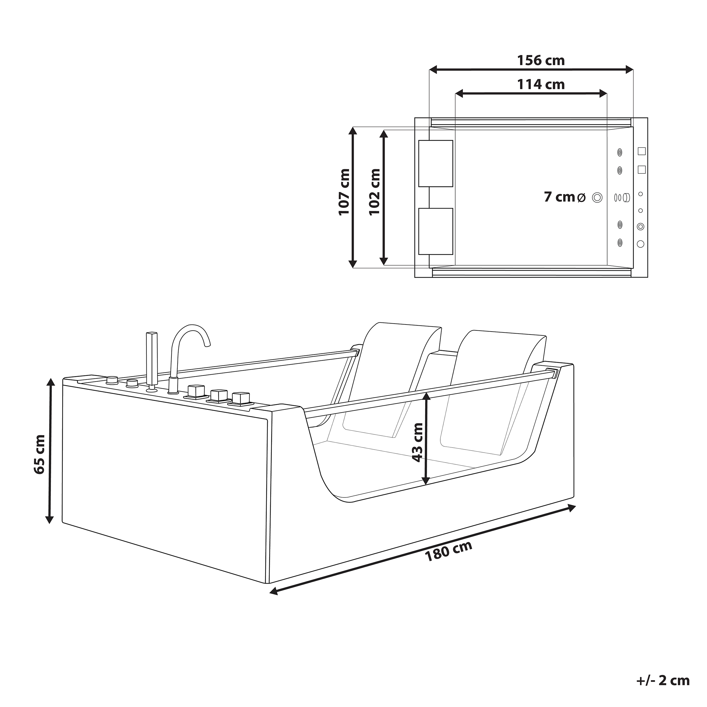 Hintaan sisältyy: 1 x Poreamme, 1 x Ylivuotojärjestelmä, 1 x Käsisuihku ja letku, 2 x Niskatuki, 1 x Ammehana