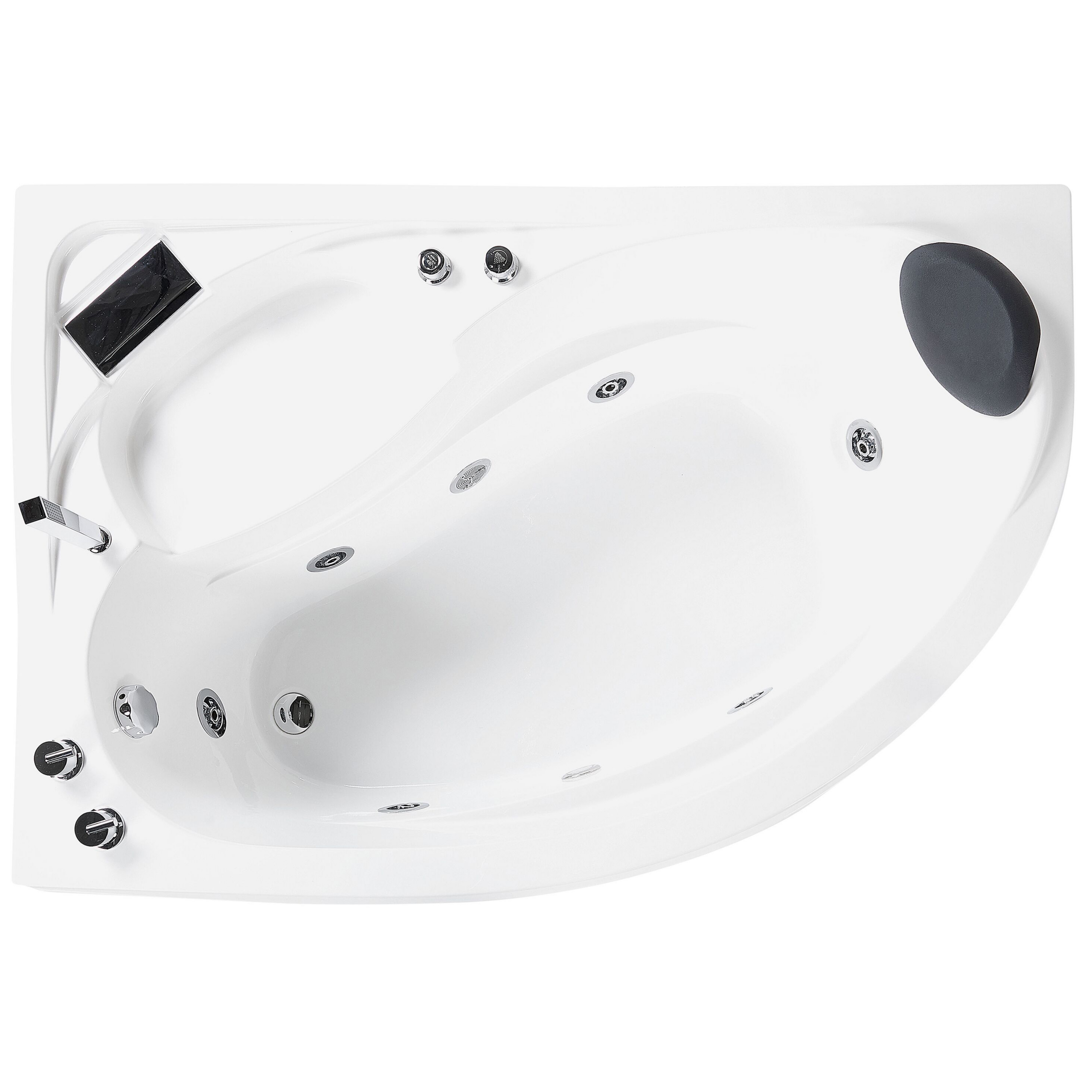 Elegantti kulmaporeamme LED-valoilla. Saavuta ultimaattinen rentous omassa kylpyhuoneessasi tämän modernin kulmaporeammeen avulla. Sisäänrakennetut suihkusuuttimet tarjoavat selkä- ja niskahierontaa ja keinonahalla päällystetty niskatuki tuo lisämukavuutta. Voit valita LED-valaistuksen seitsemästä sävystä joko piristävän tai rauhoittavan värin. Akryylinen rakenne auttaa säilyttämään veden lämpimänä ja se on helppo puhdistaa.