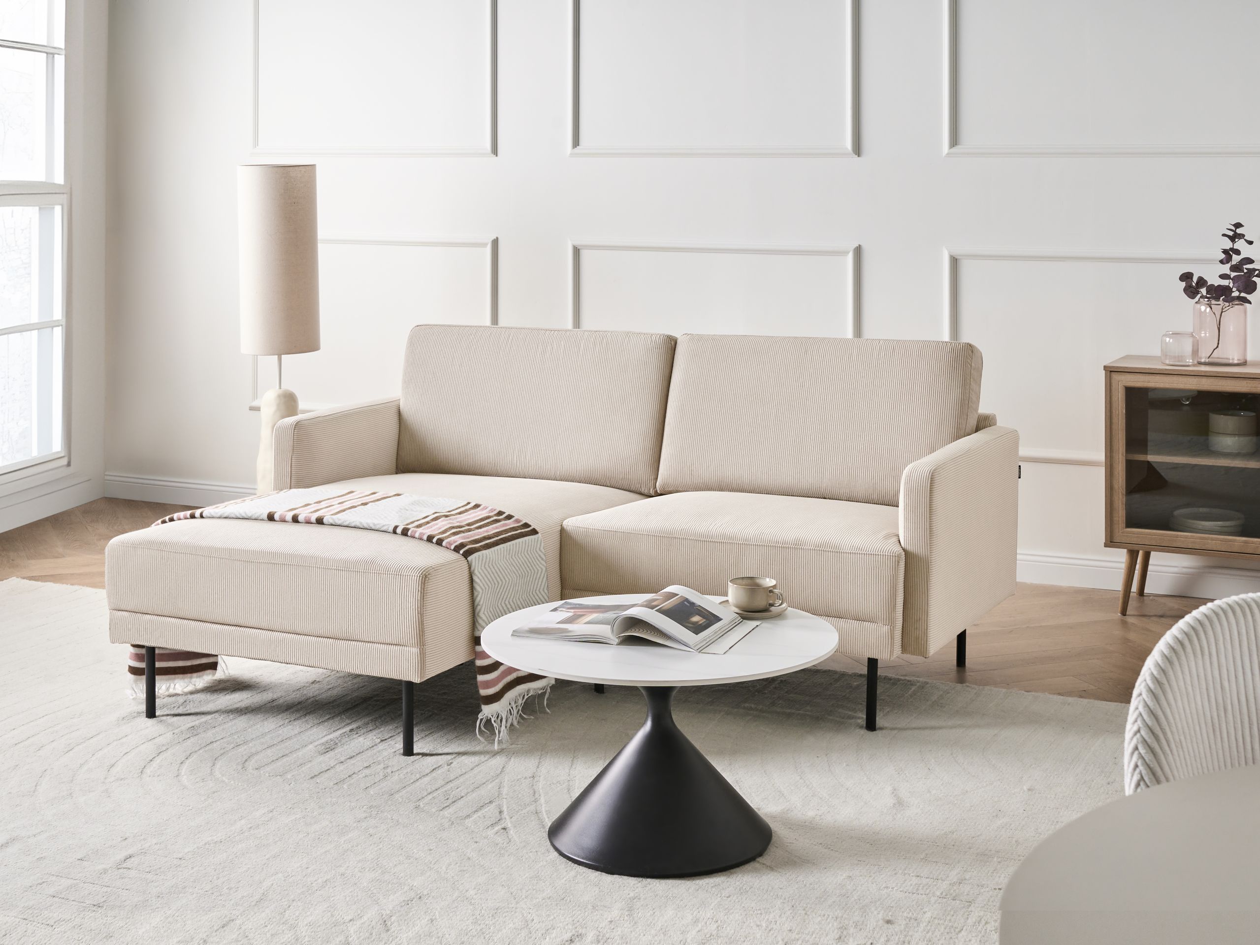 Kulmasohva 2-istuttava BREDA vakosametti Beige Oikea
