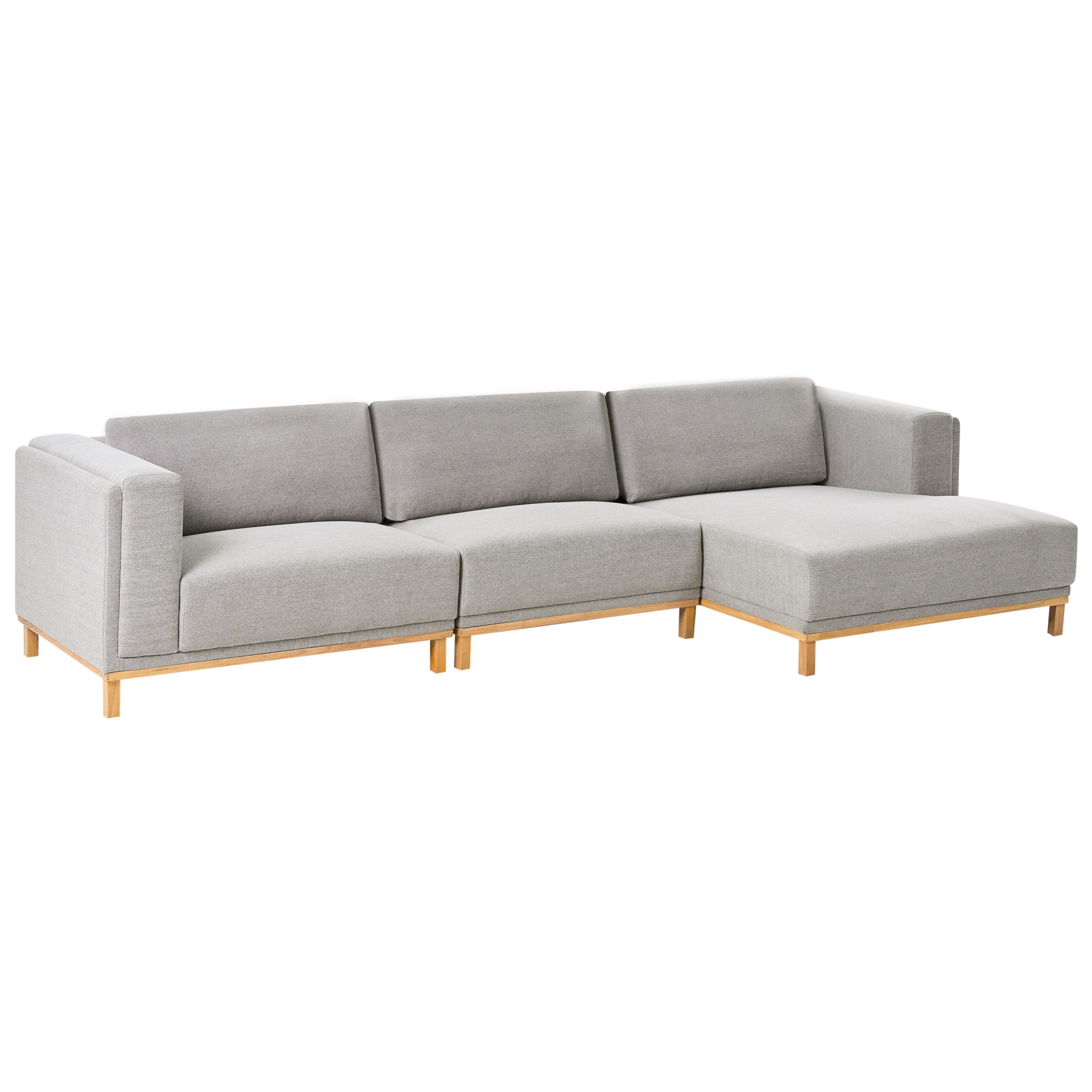 Moderni verhoiltu divaanisohva puujaloilla. Lisää olohuoneeseen mukavuutta ja tyyliä tällä tilavalla kulmasohvalla, jolle mahtuu jopa viisi henkeä. Sohvan runko on verhoiltu kestävällä ja vettä hylkivällä polyesterikankaalla, jota täydentävät paksu pehmustus ja leveä divaani, joka sijaitsee istujan näkökulmasta vasemmalla. Vaaleat, massiivipuusta valmistetut jalat takaavat vakauden ja täydentävät verhoilun harmaata väriä. Sohva sopii täydellisesti jokaiseen moderniin tai perinteiseen sisustukseen.