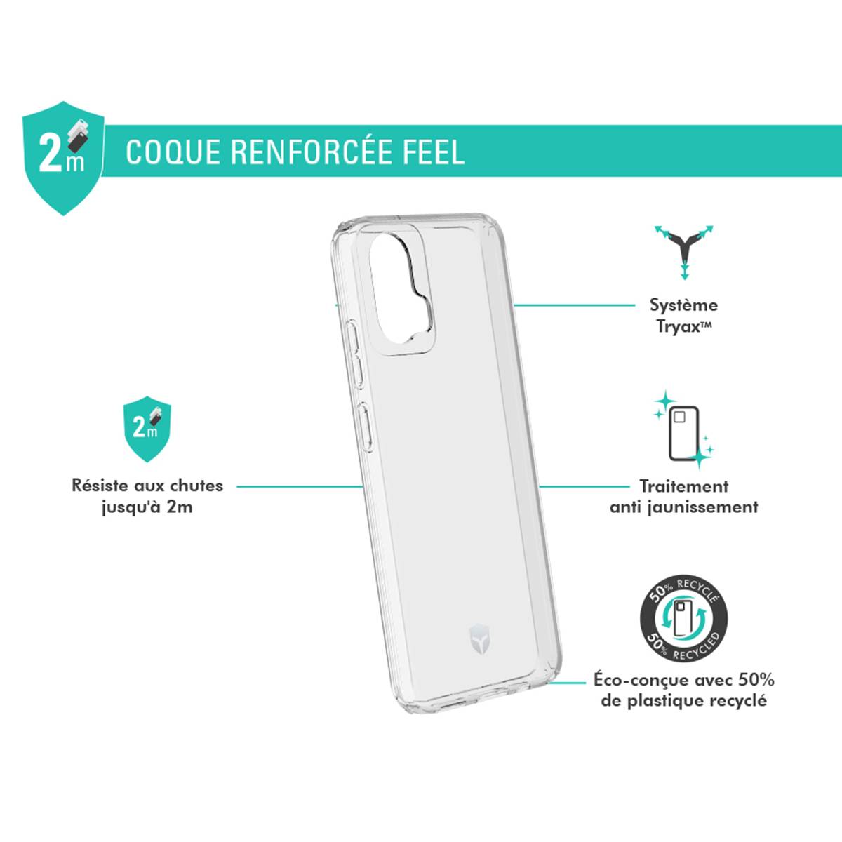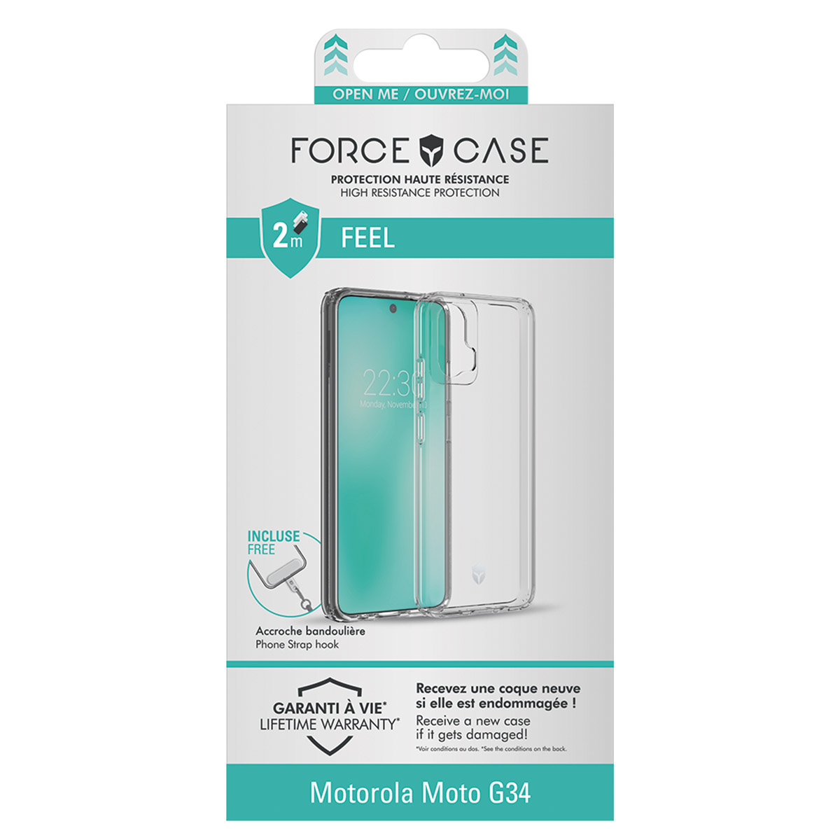 Tämä FEEL-kotelo suojaa Motorola G34 5G -puhelintasi jokapäiväisiltä iskuilta ja kolhuilta. Se kestää pudotukset 2 metrin korkeudesta integroitujen tryax 3D -inserttien ansiosta. Reunat ja kameran alue on vahvistettu suojaamaan näyttöä ja linssiä naarmuilta. Muovista valmistettu ja kellastumista estävästi polymeerikäsitelty kuori säilyttää läpinäkyvyytensä pidempään.