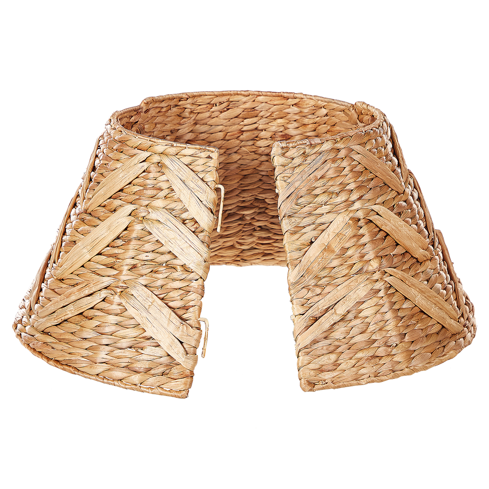 Käsintehty joulukuusen kaulus. Viimeistele joulukuusesi koristelu tällä tyylikkäällä kuusenjalan suojuksella. Huolella vahvasta, luonnollisesta vesihyasintista punottu kaulus toimii tyylikkäänä koristeena, peittäen ja suojaten joulukuusen jalustaa. Näyttävä siksak-punos viimeistelee joulusisutuksen ilmeen, tuoden siihen rustiikkista ja boheemia tyyliä. Pyöreän, suuren kokonsa ansiosta se voidaan yhdistää erilaisiin jalustoihin.