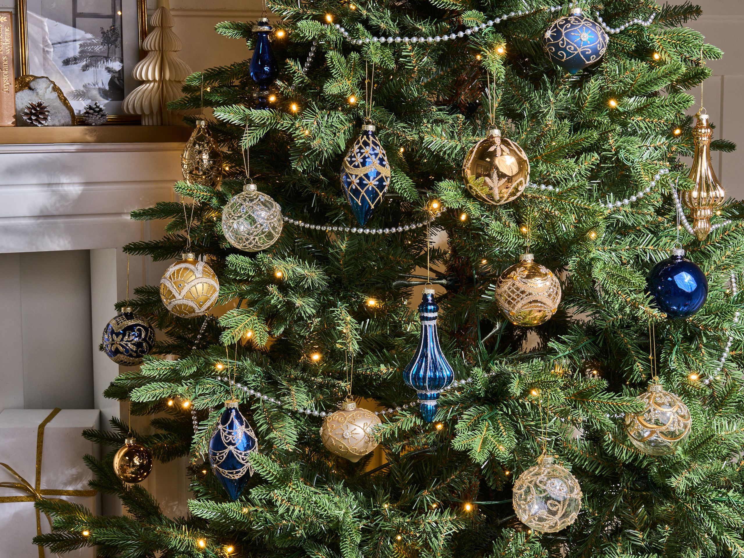 Käsintehty 35-osainen joulupallosetti. Muuta koti ylelliseksi joulun ihmemaaksi tällä viehättävällä 35-osaisella kuusenkoristesetillä, jossa on sekoitus jäänsinisiä, kirkkaita ja kullanvärisiä joulupalloja. Jokainen koriste on valmistettu lasista ja käsin maalattu, mikä takaa laadukkaan viimeistelyn ja kodikkaan tunnelman. Niiden pinnat on koristeltu hienovaraisesti hopeanvärisellä glitterillä, joka heijastaa jouluvalojen loistetta pehmeästi.