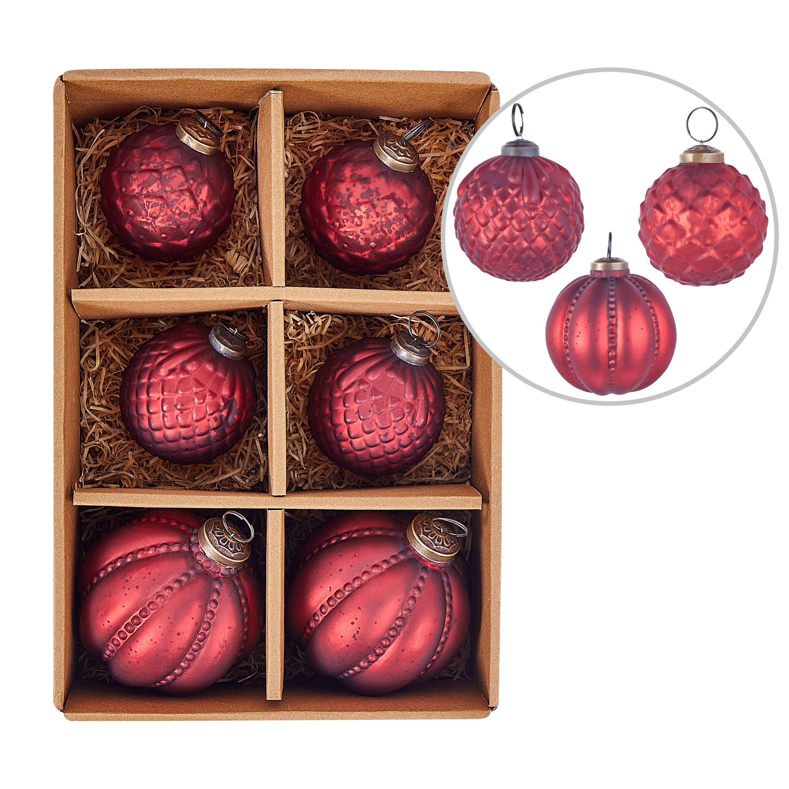Tyylikäs käsintehty joulukuusenkoristesetti. Tämä lumoava kuuden joulupallon setti tuo mieleen rakkaat perinteet ja tunnelmalliset kokoontumiset kotona. Käsin lasista valmistettujen koristeiden ajaton punainen väri korostaa kauniisti vihreitä oksia. Klassisen muotoilunsa ansiosta koristepallot tuovat tilaan joulunajan tunnelmallista charmia.
