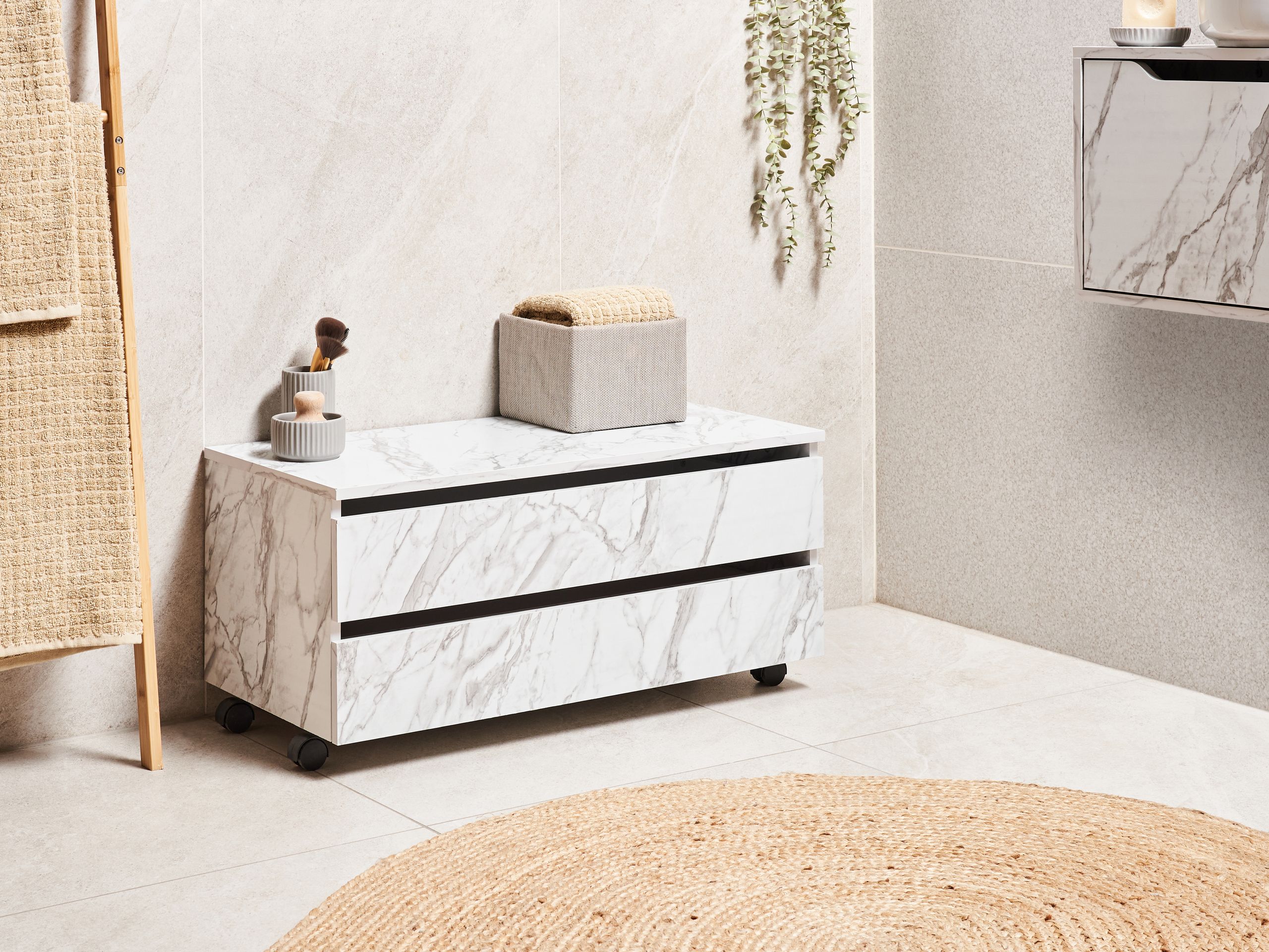 Kylpyhuoneen kaappi TERESINA pyörillä 80 cm Valkoinen marmorikuvio